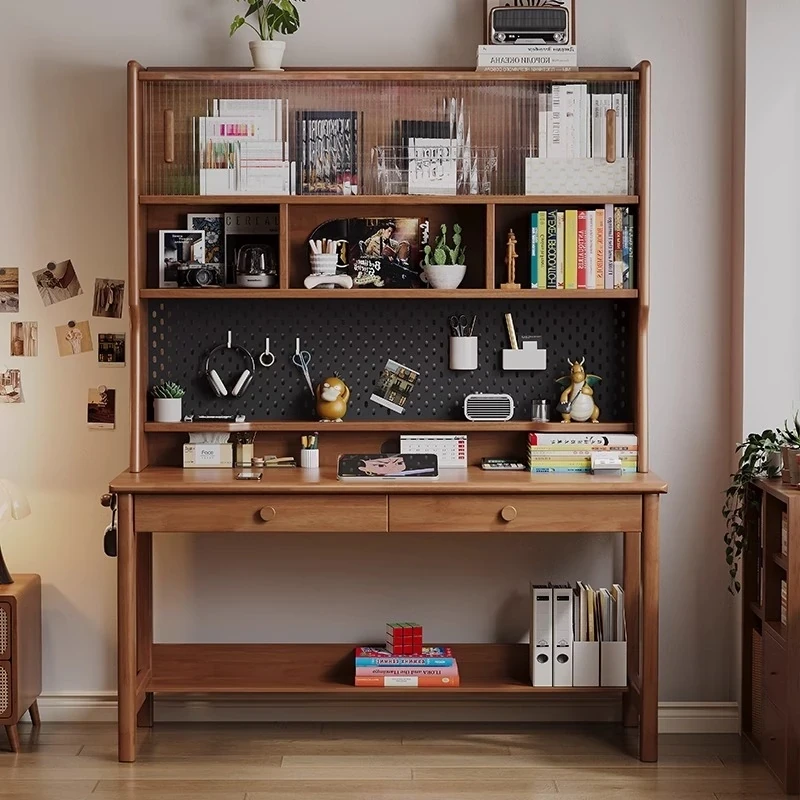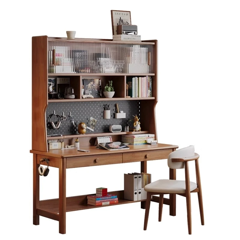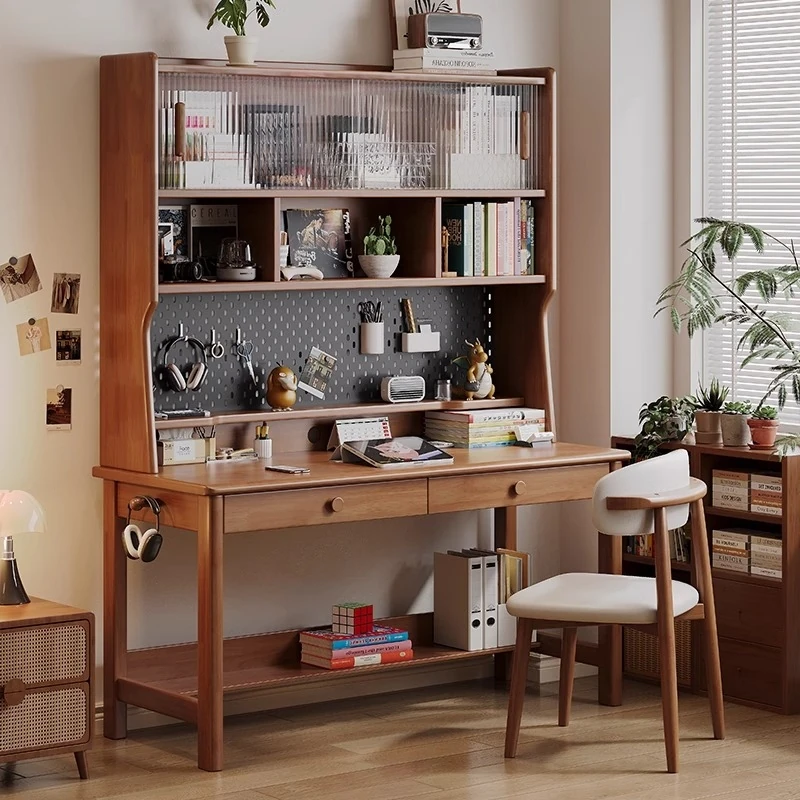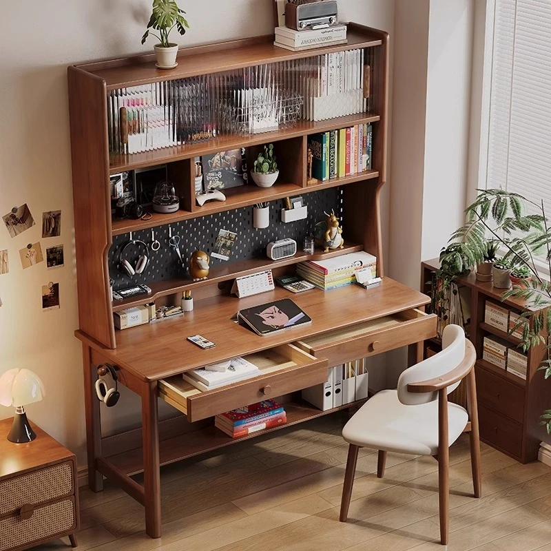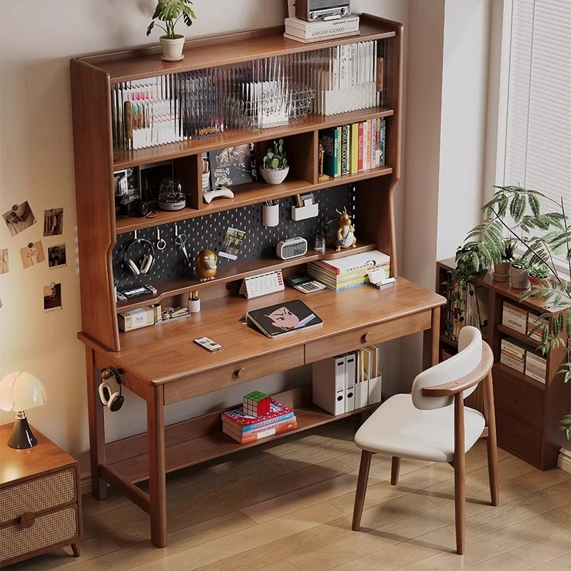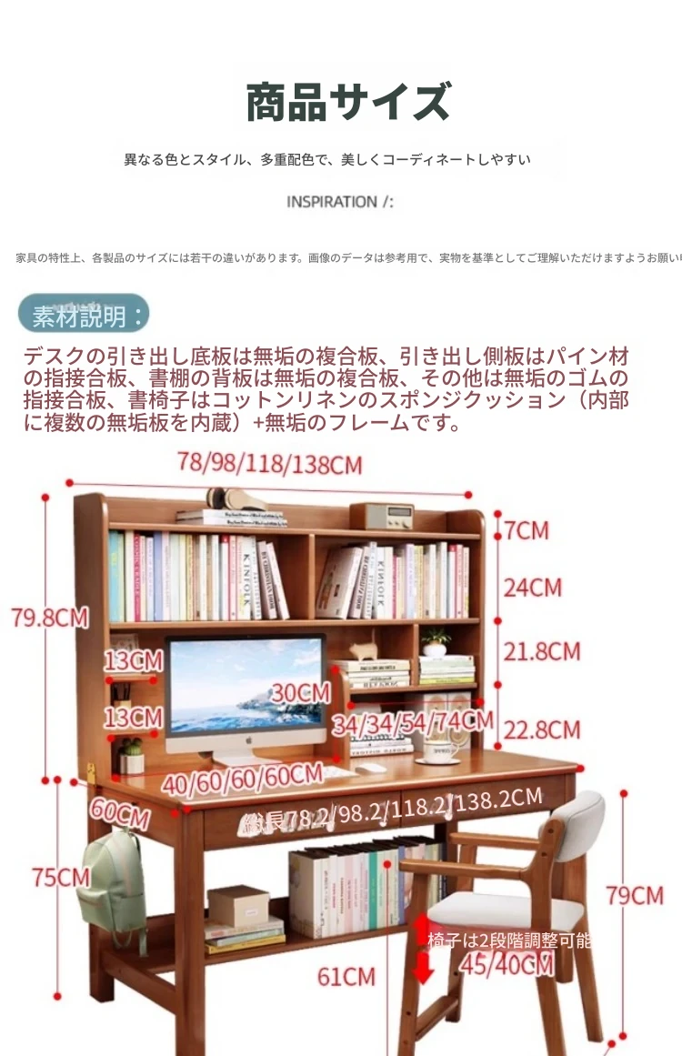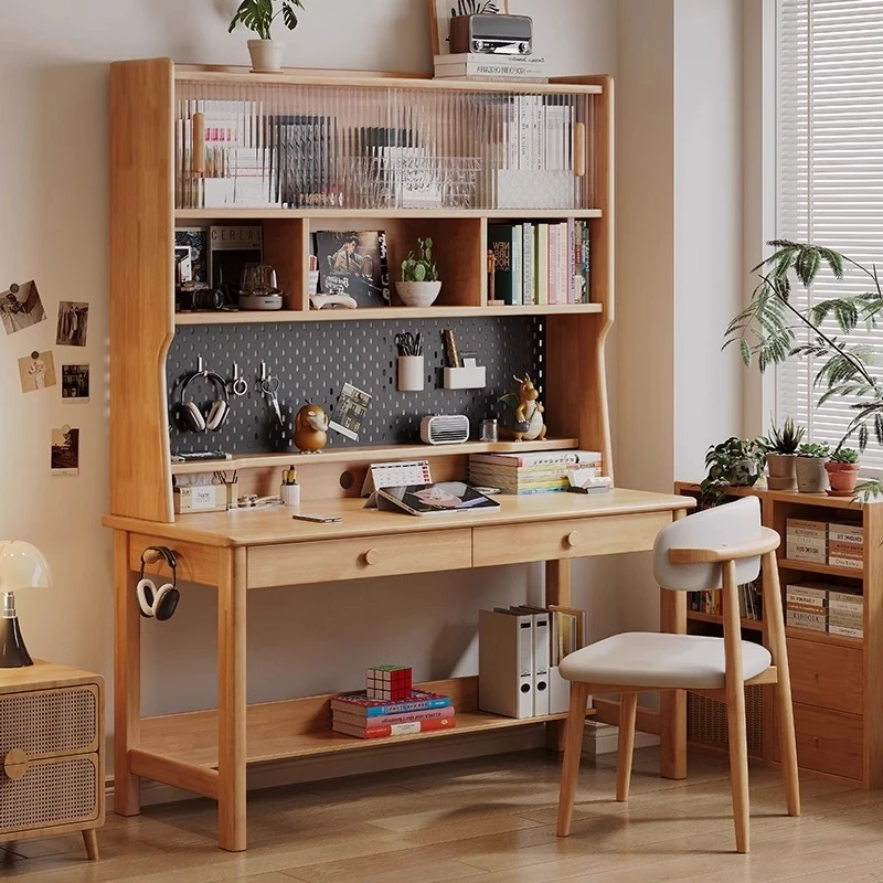豪華な北欧スタイルの実木デスク&シェルフ一体型!学生・家庭向けの多機能ボード学習テーブルと本棚のコンビネーションで、快適な学習空間を実現。整理整頓も簡単で、勉強がもっと楽しくなる!