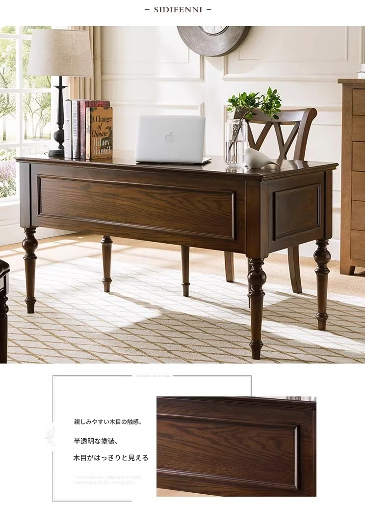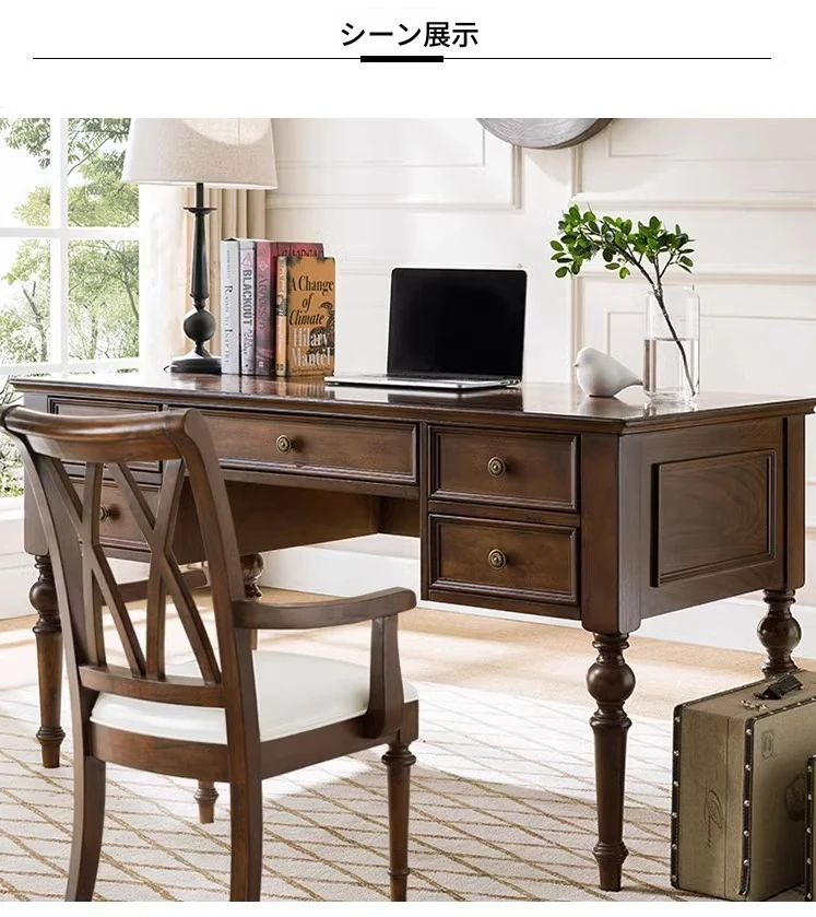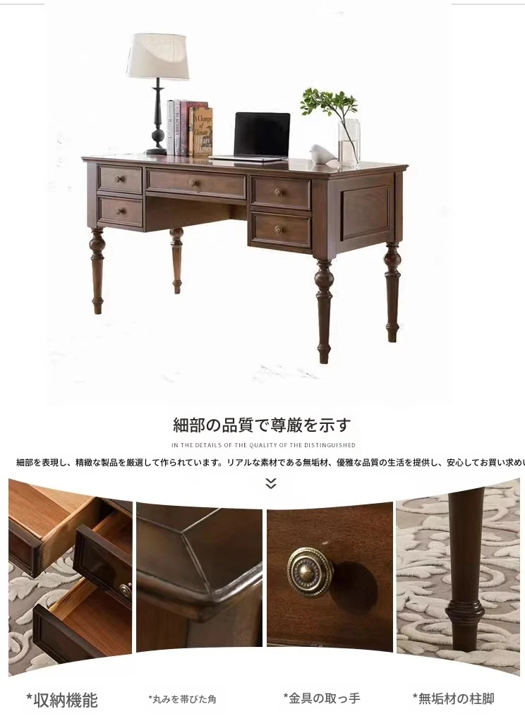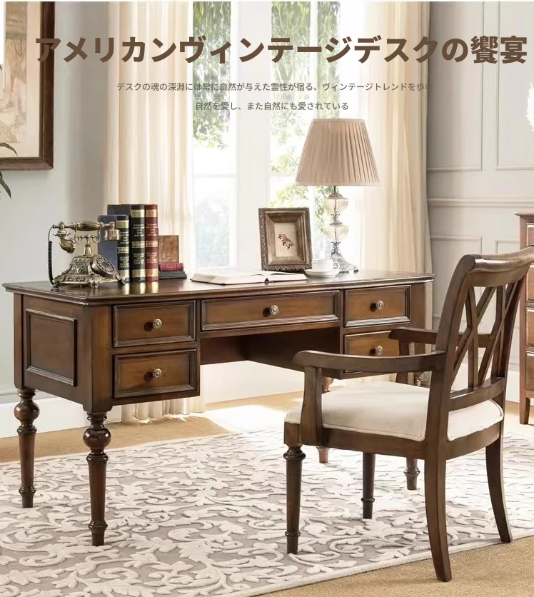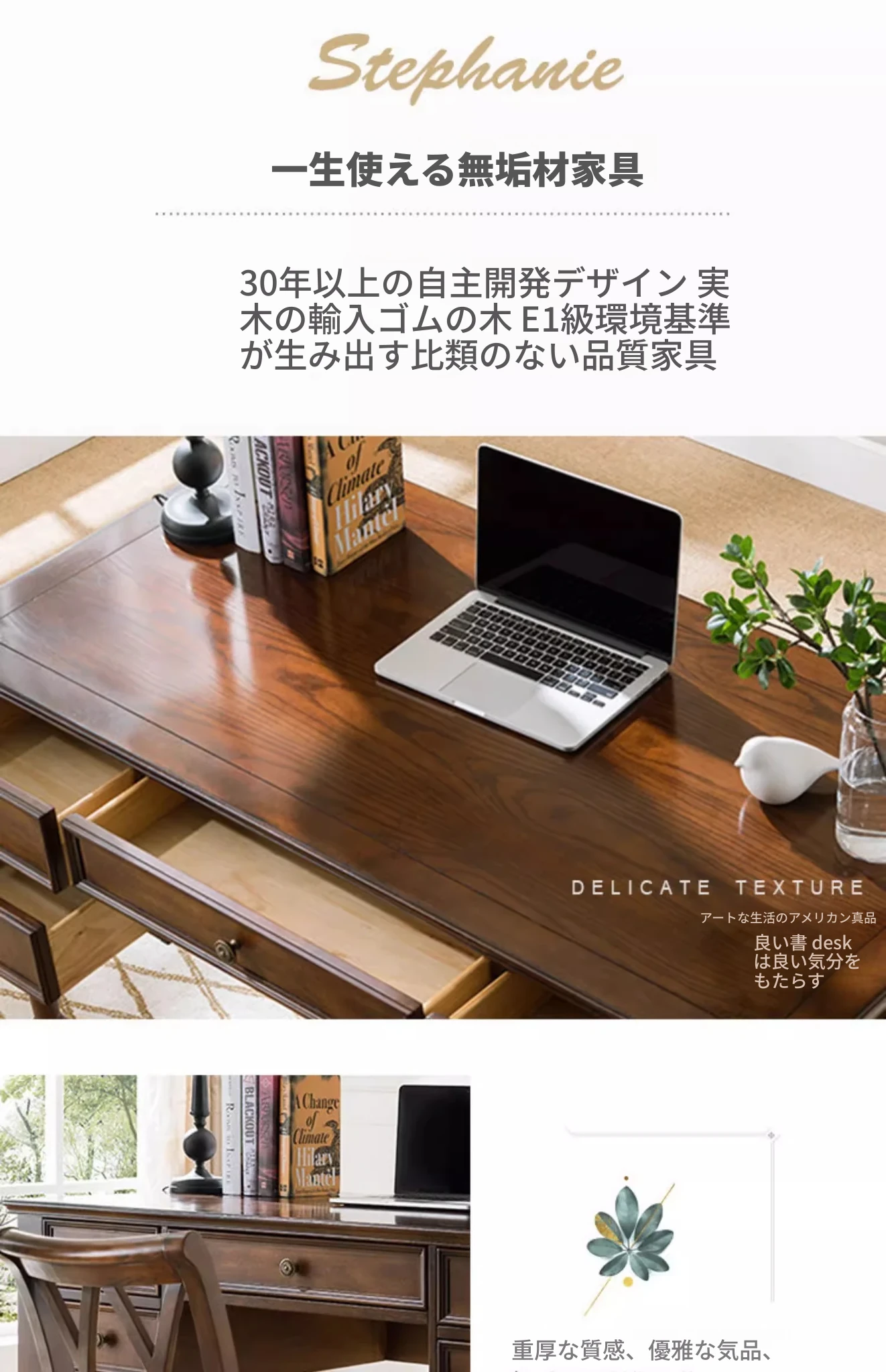 セントバリーアメリカンカントリースタイル 全実木製 デスク パソコンデスク 家庭用オフィスデスクチェアセット ウォールナット色 レトロデザインでエレガントな雰囲気を演出【送料無料】