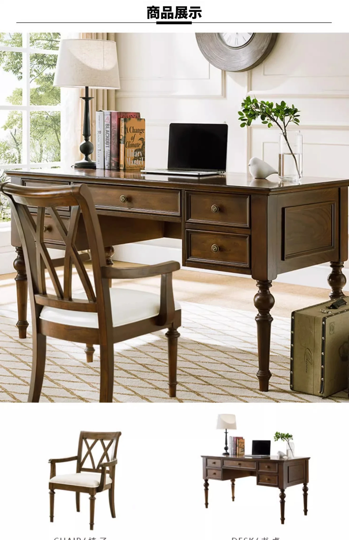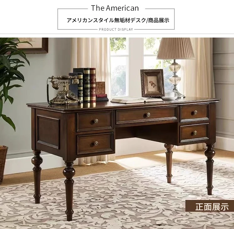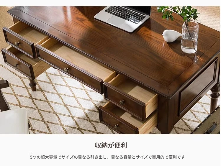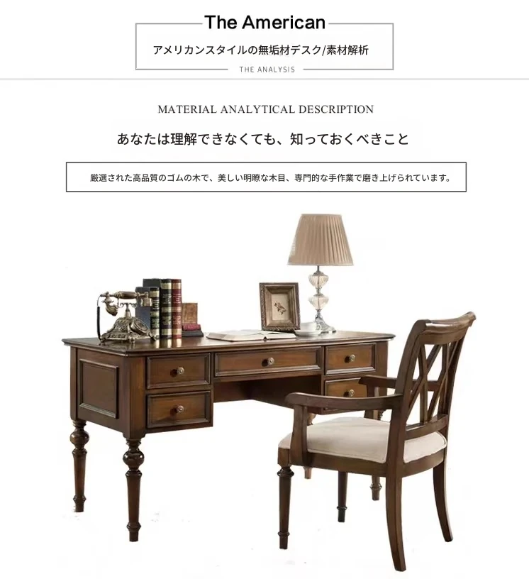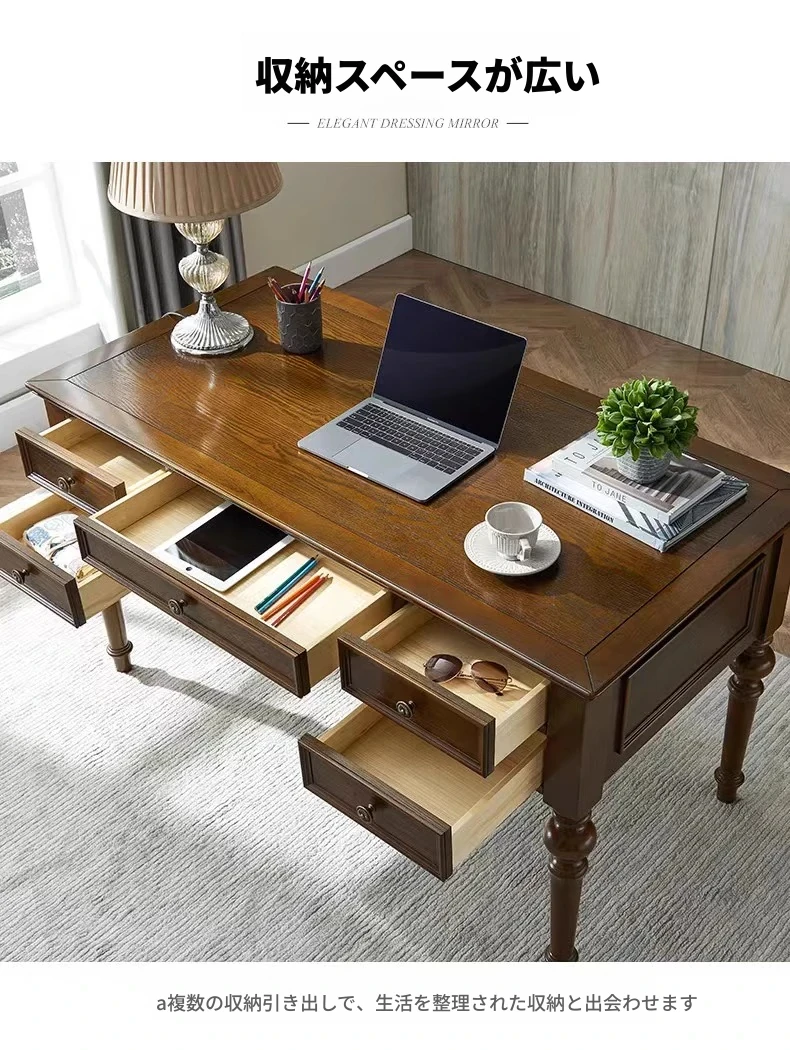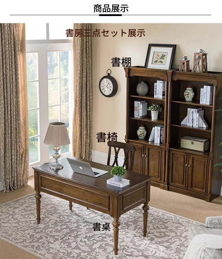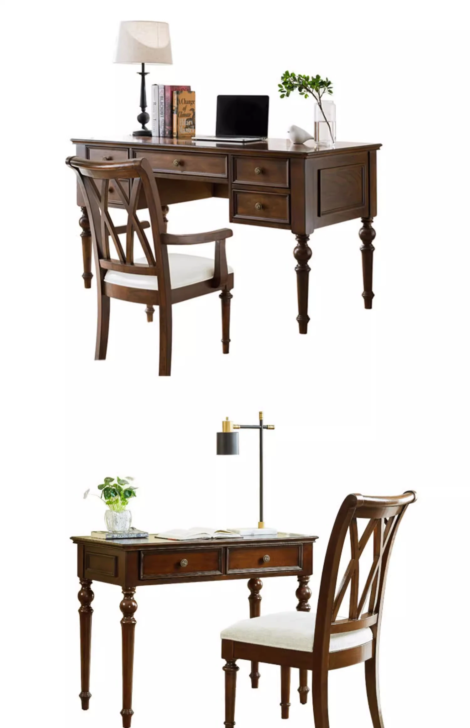 セントバリーアメリカンカントリースタイル 全実木製 デスク パソコンデスク 家庭用オフィスデスクチェアセット ウォールナット色 レトロデザインでエレガントな雰囲気を演出【送料無料】
