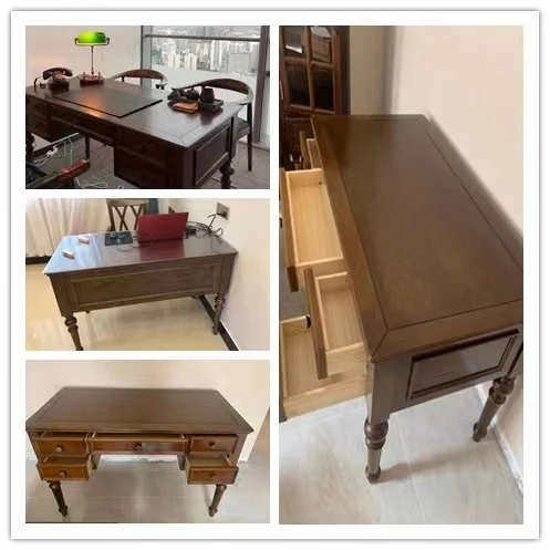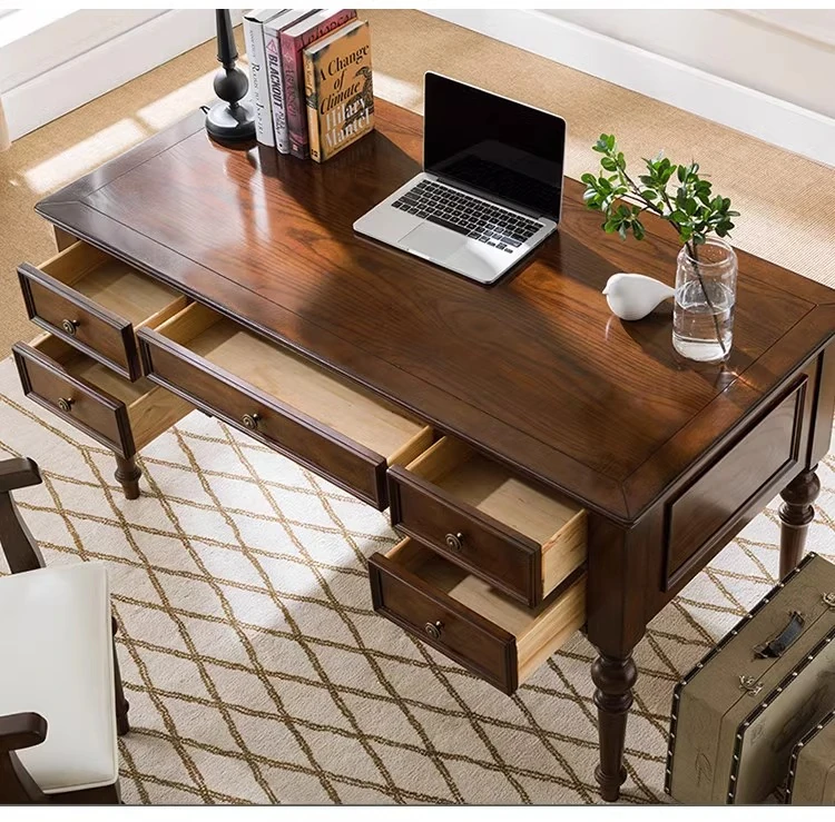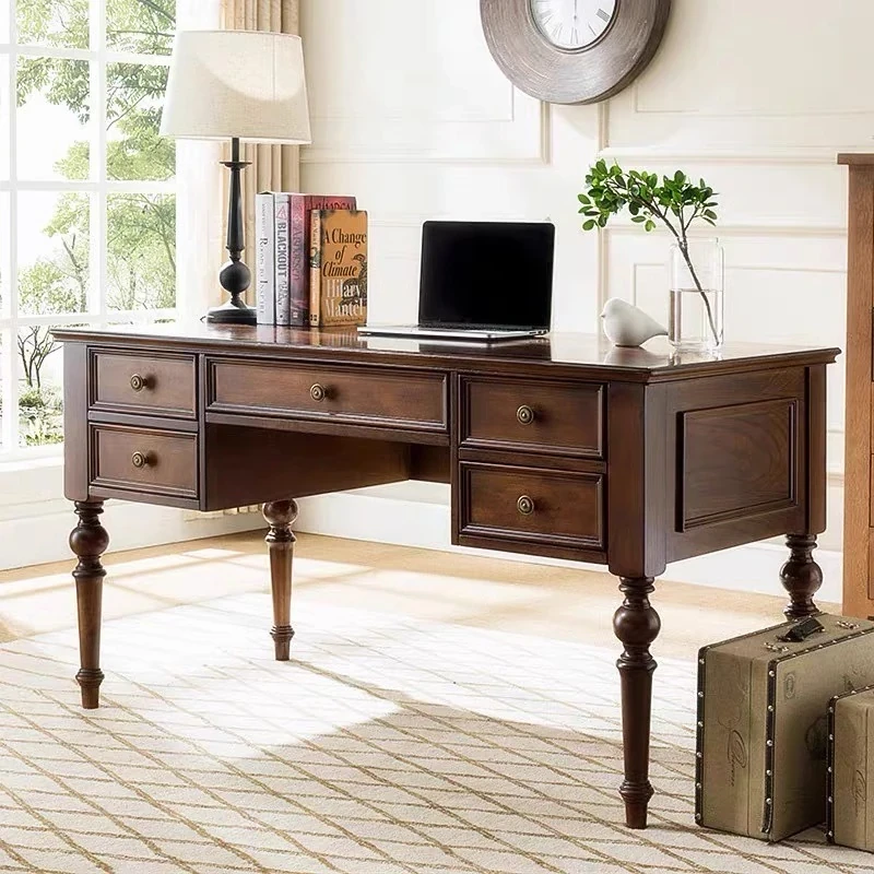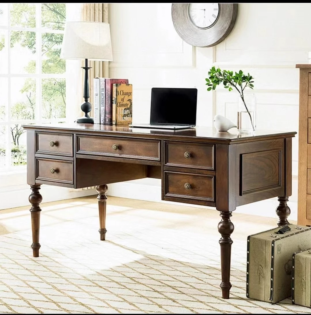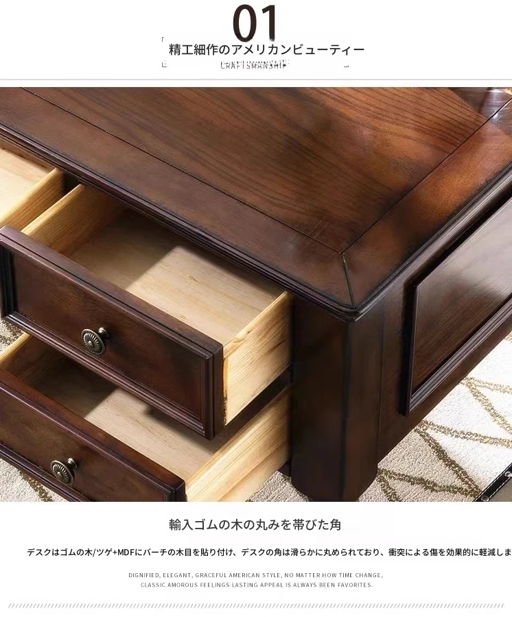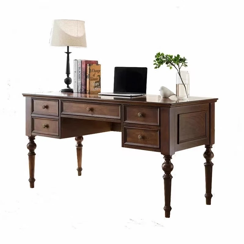 セントバリーアメリカンカントリースタイル 全実木製 デスク パソコンデスク 家庭用オフィスデスクチェアセット ウォールナット色 レトロデザインでエレガントな雰囲気を演出【送料無料】