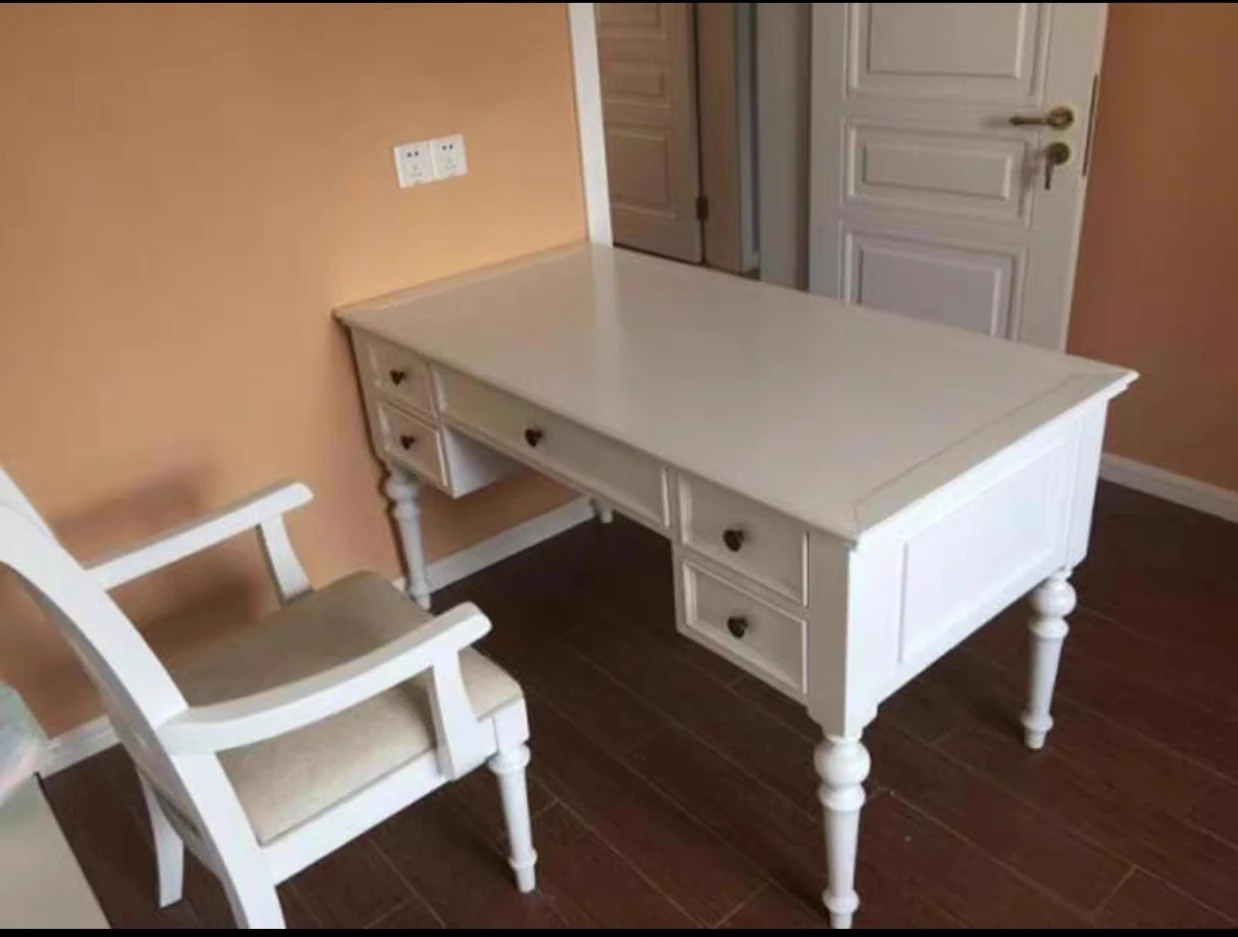 フルウッド1.8メートルデスク+アームチェア アイボリー