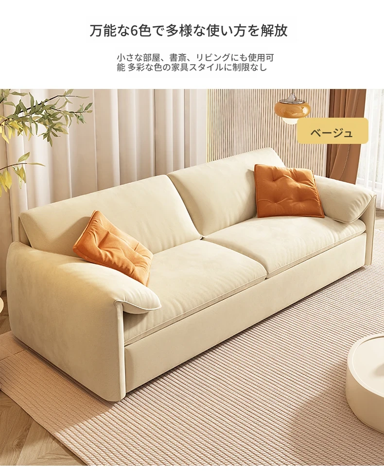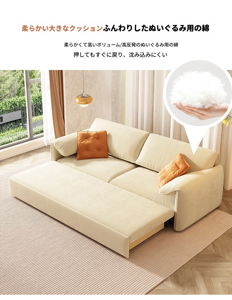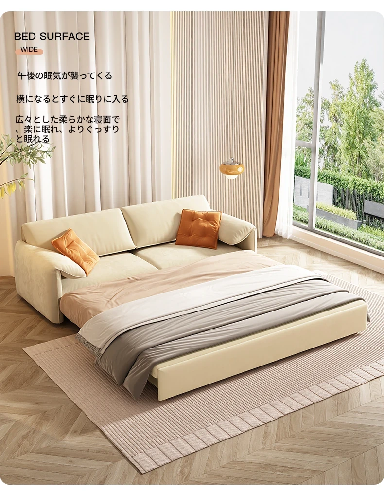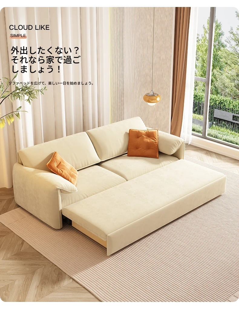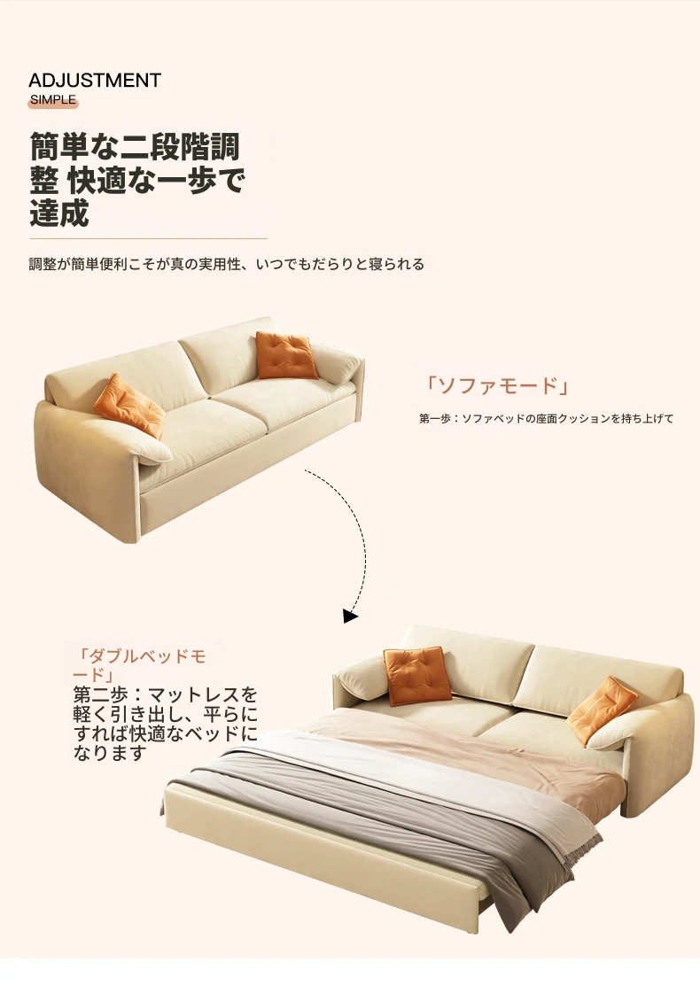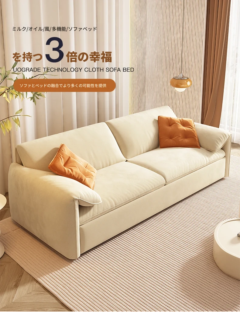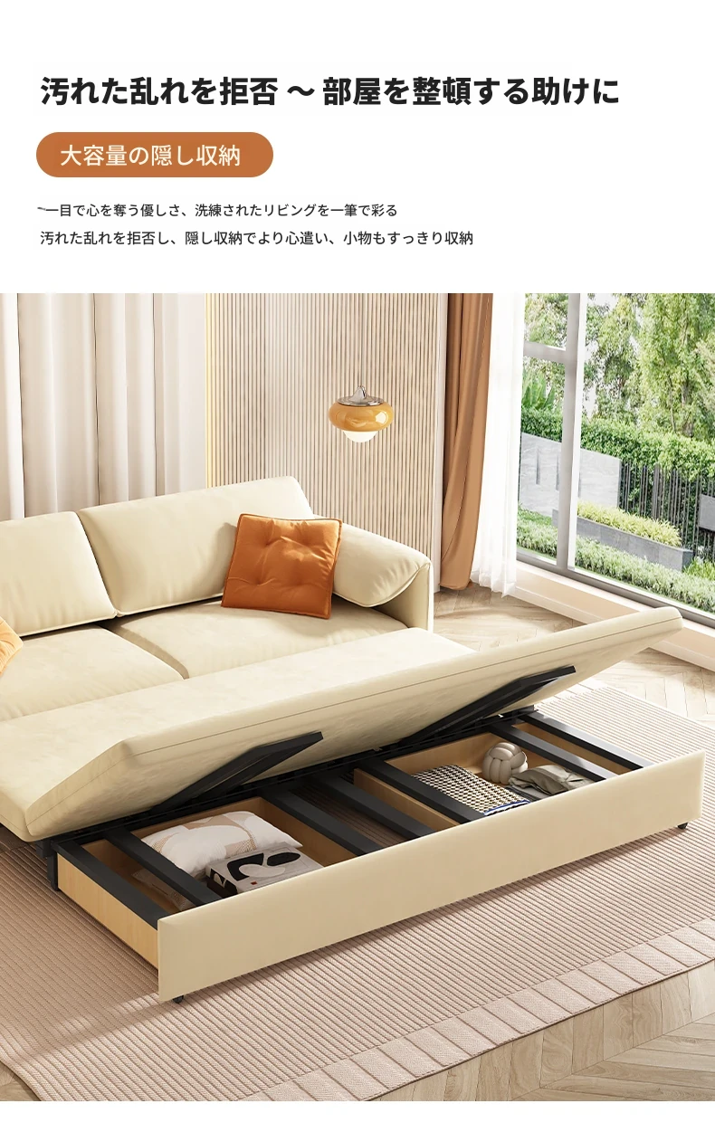 ケイモン豪創 クリーム風 スライド式2WAY折りたたみソファベッド 多機能収納付き 小型家最適科技フロック生地製!快適な眠りとスタイリッシュな空間を実現!