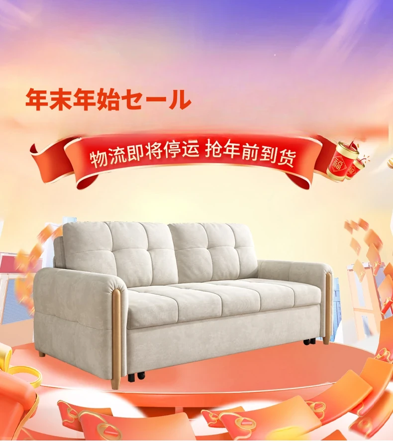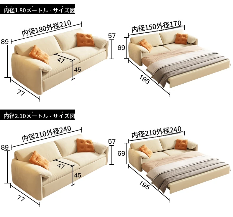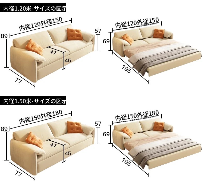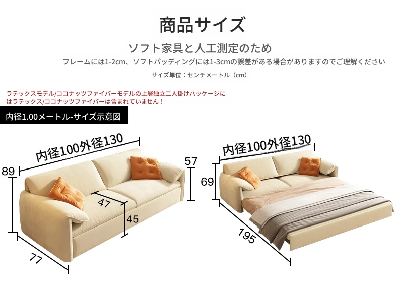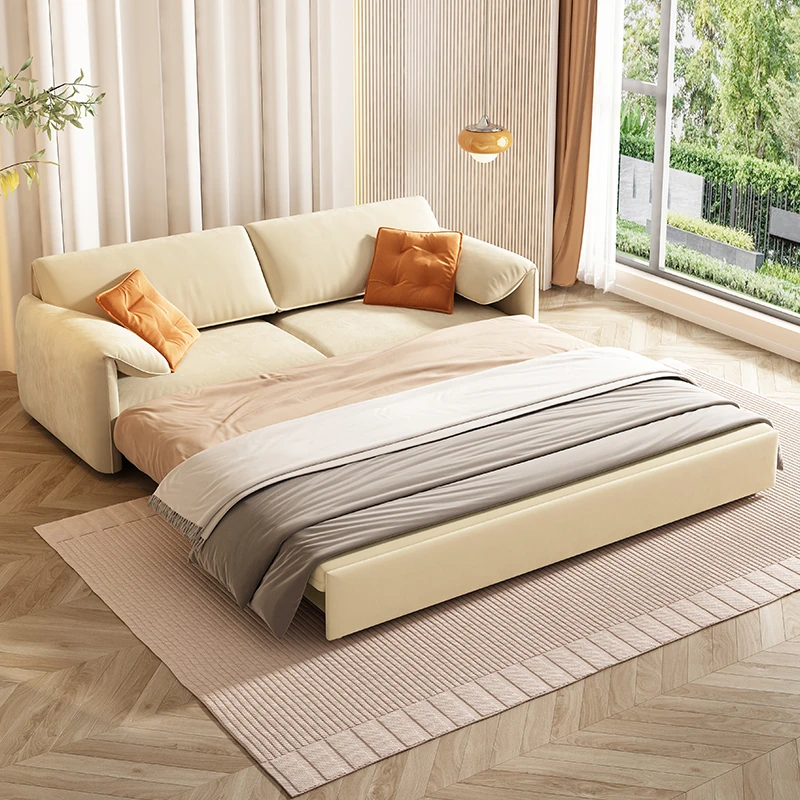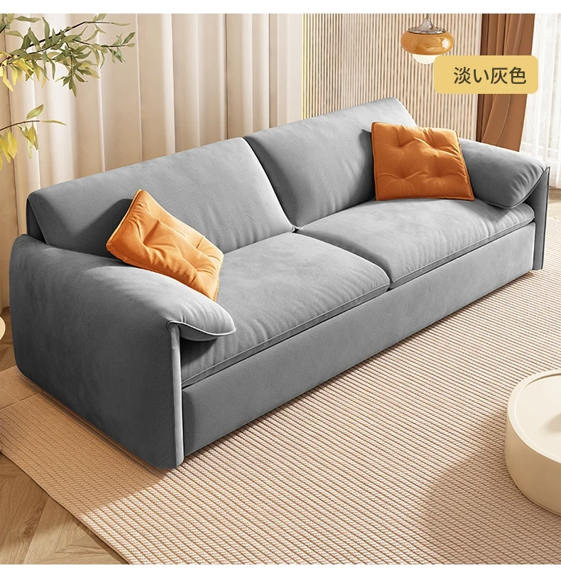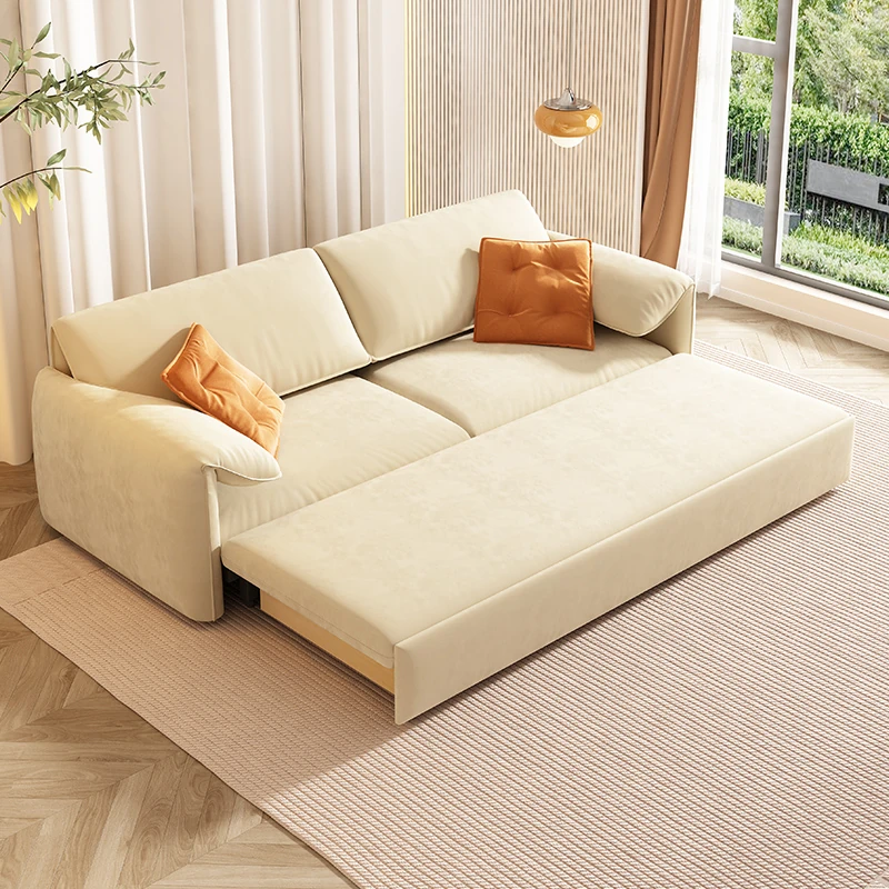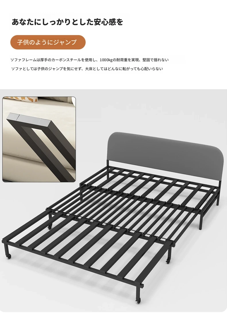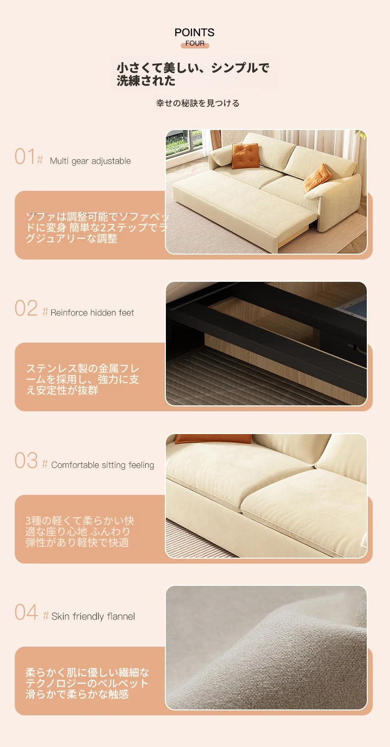 ケイモン豪創 クリーム風 スライド式2WAY折りたたみソファベッド 多機能収納付き 小型家最適科技フロック生地製!快適な眠りとスタイリッシュな空間を実現!