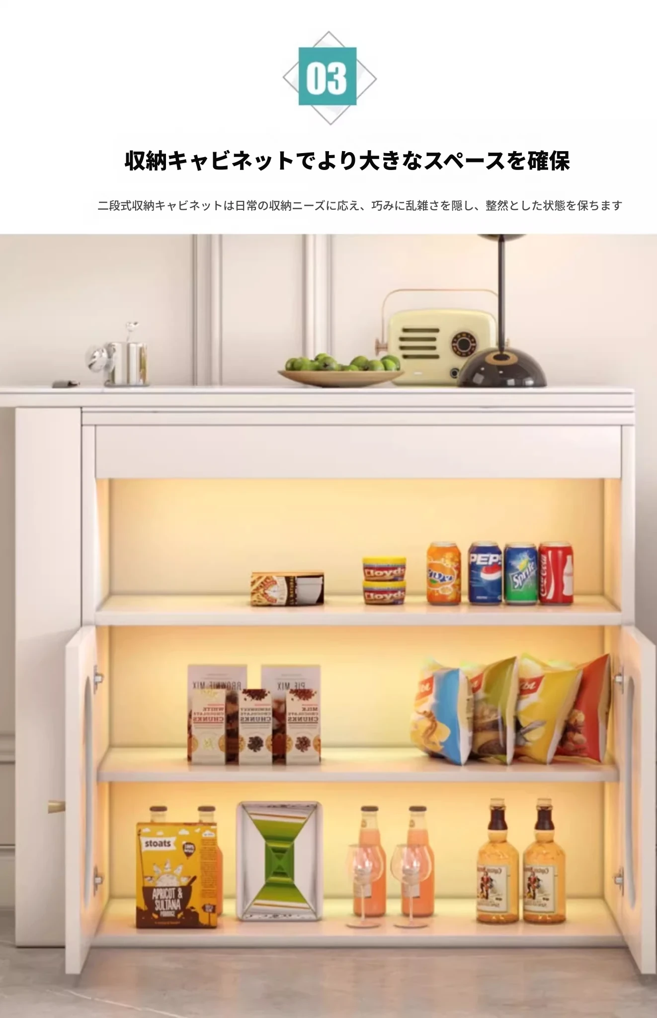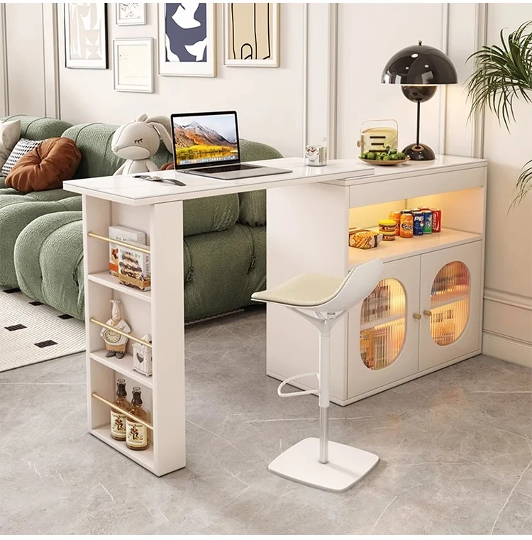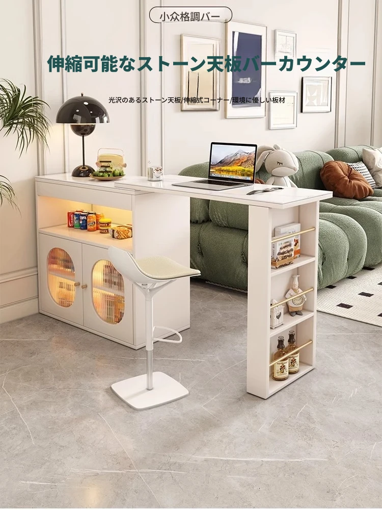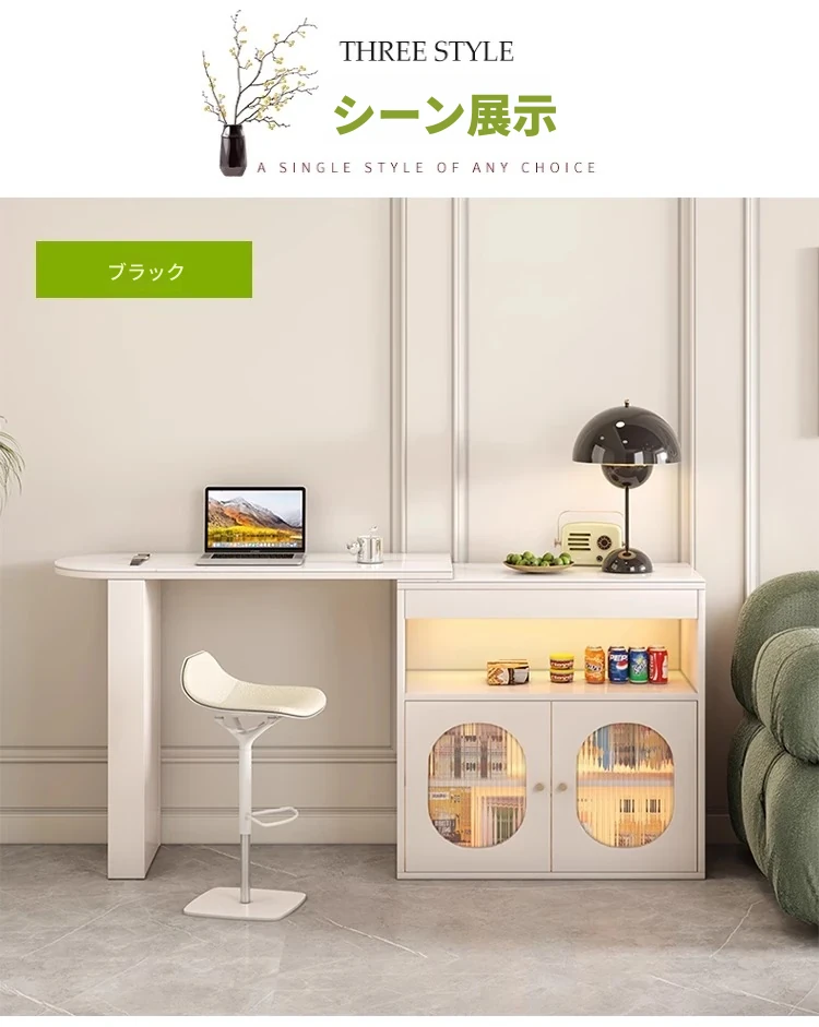 セントパリオ伸縮式ソファサイド仕切りキャビネット&バーカウンターテーブル - スペース有効活用で多機能!スタイリッシュなデザインでお部屋をオシャレに演出。お客様との時間を特別なものに。