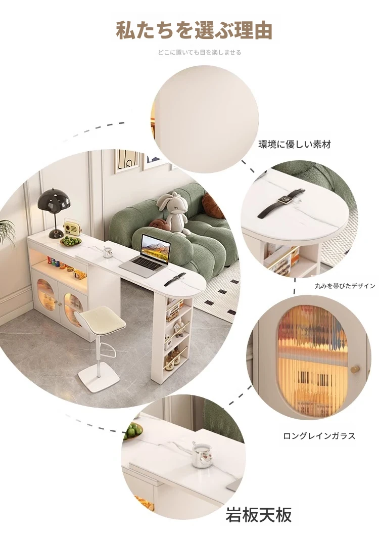 暖白80丸角バーカウンターテーブル+岩板 取り付け付き