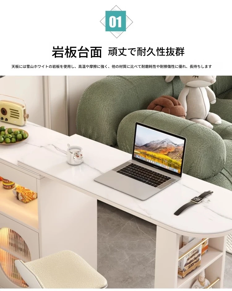 暖白80直角バーカウンターテーブル+岩板 取り付け付き