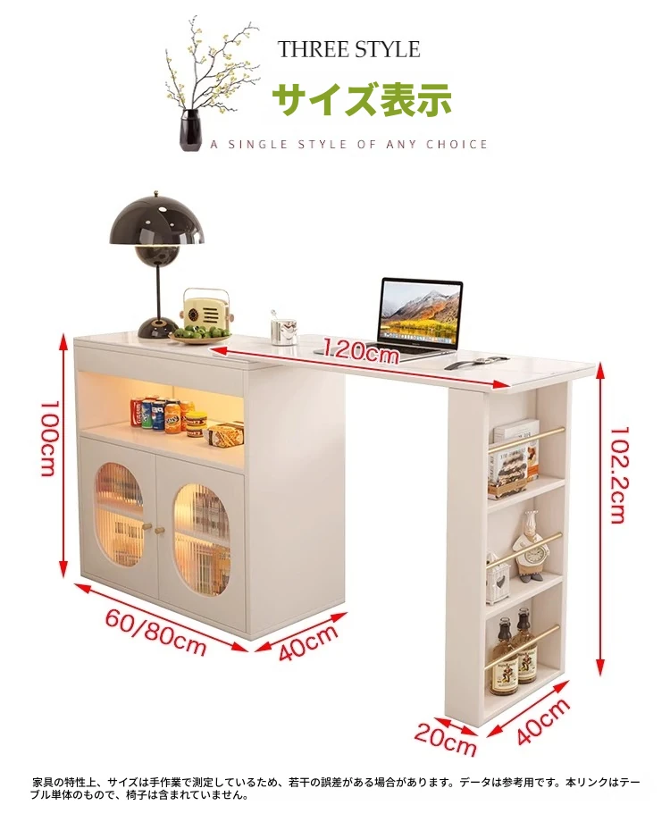 暖白60直角バーカウンターテーブル+岩板 取り付け付き