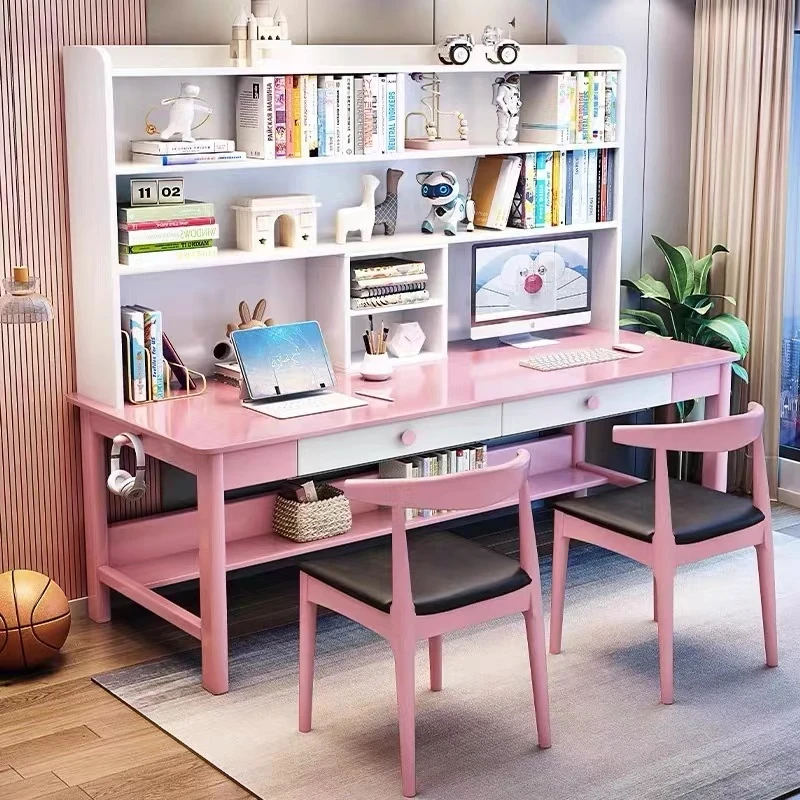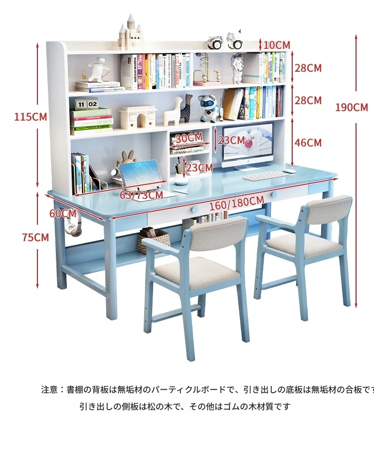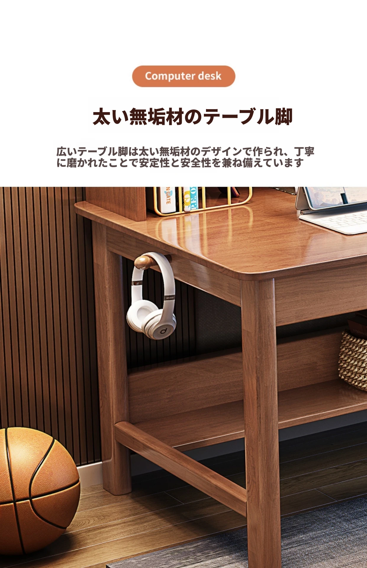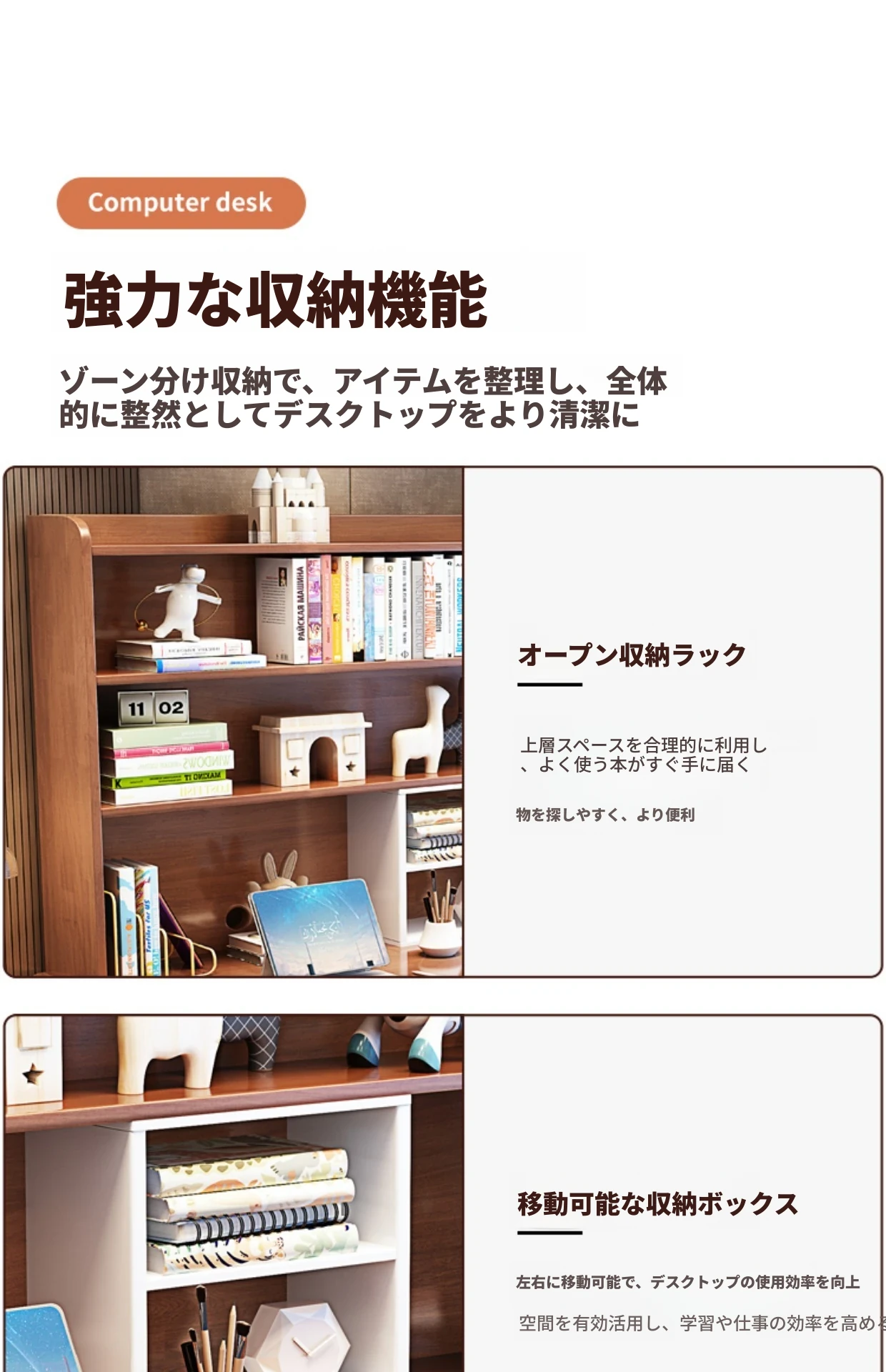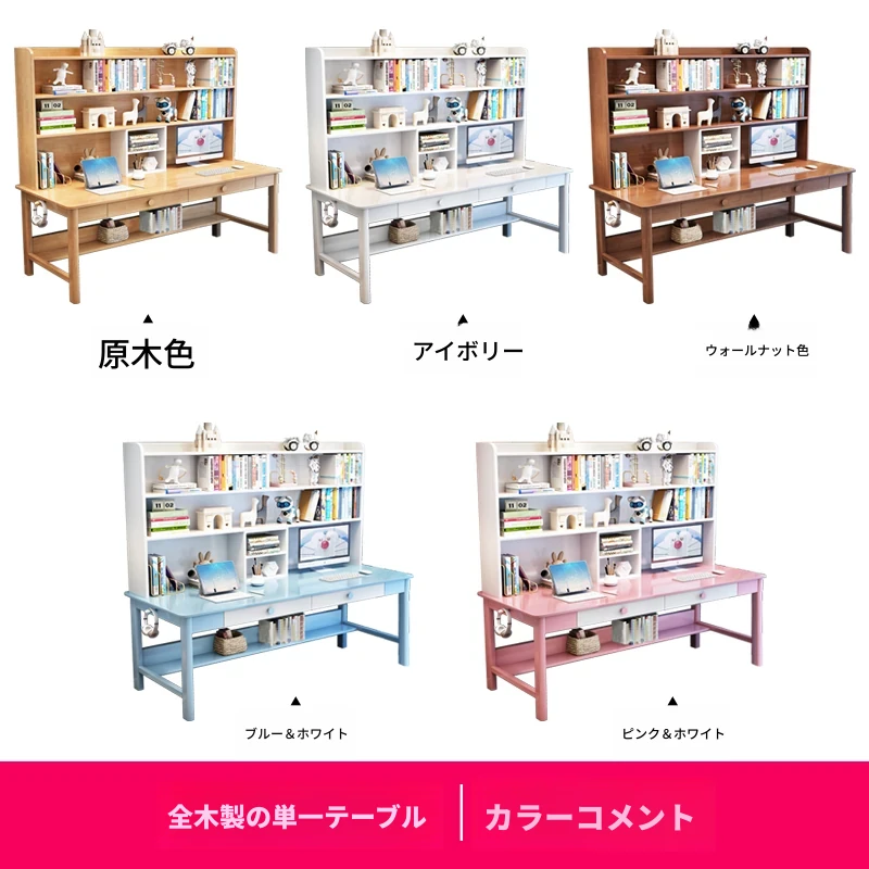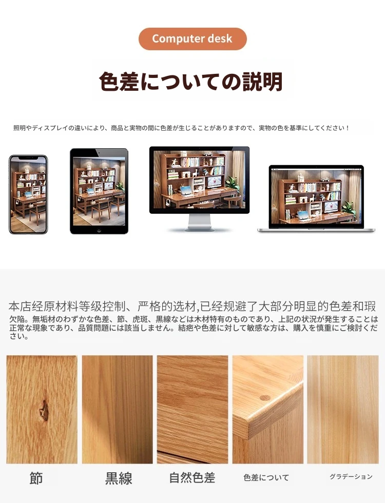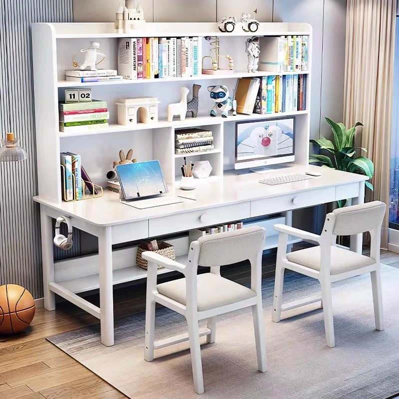ウィンノー無垢材ダブルデスク&本棚一体型 スタイリッシュなオフィスデスク 家庭用・リビングに最適な並列学習・執筆デスクセット 快適な作業空間を実現!