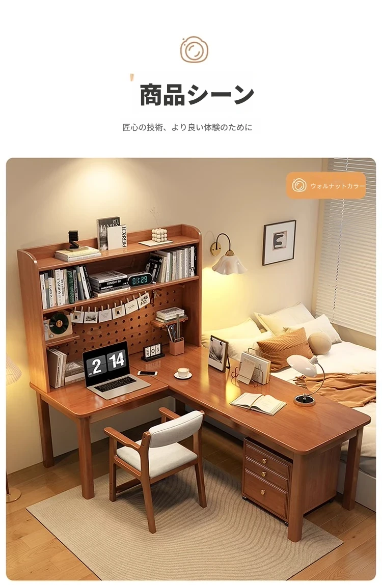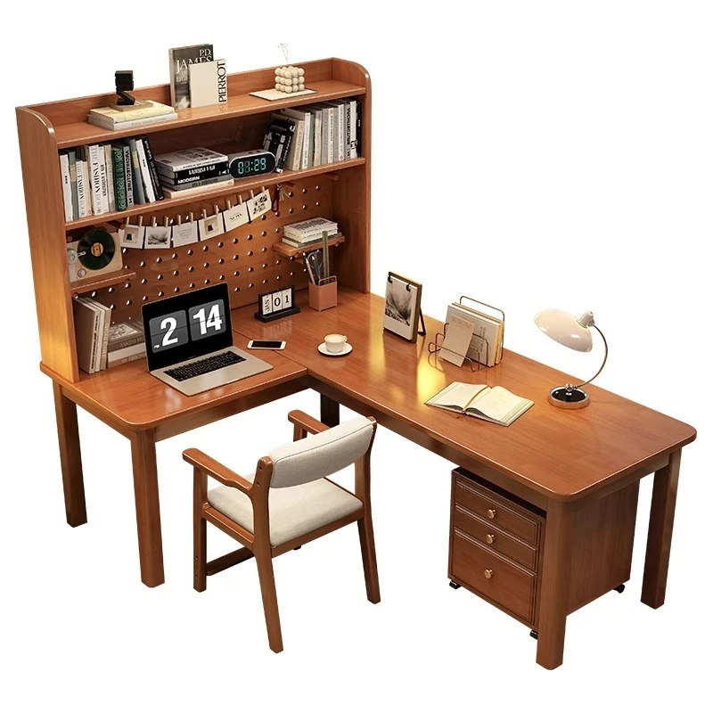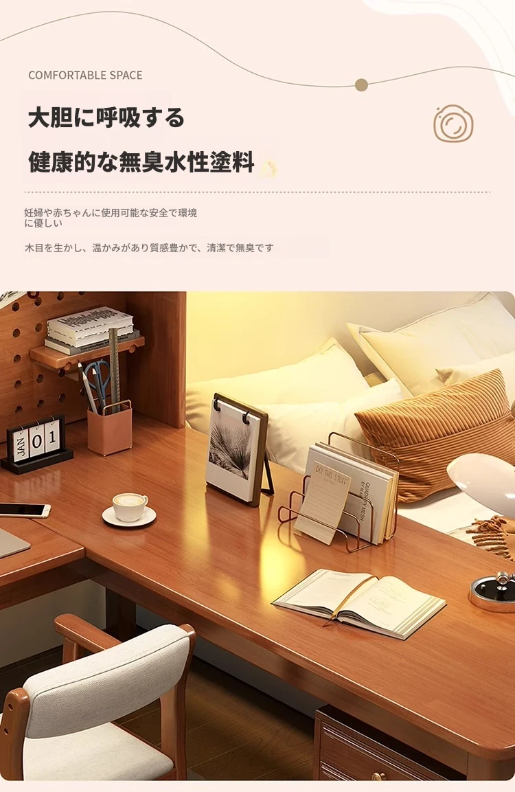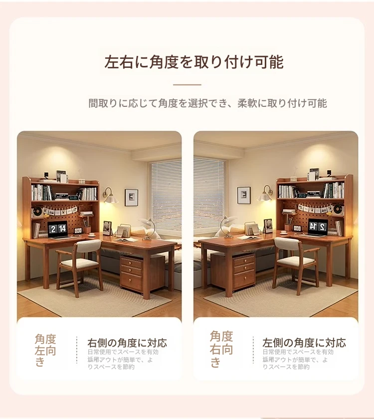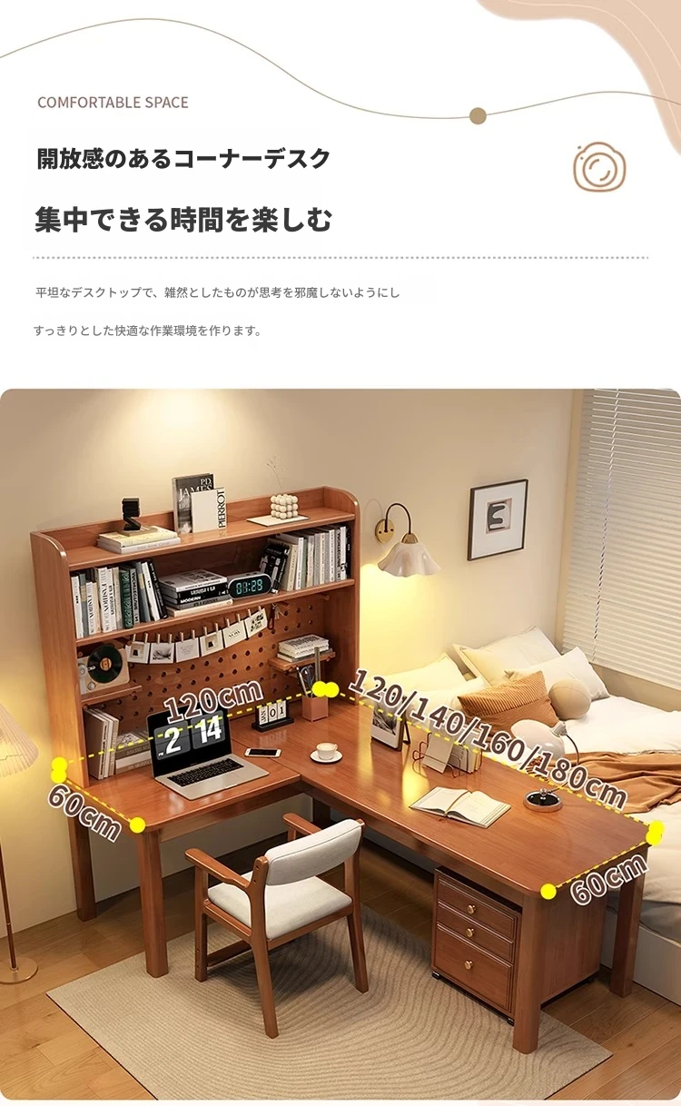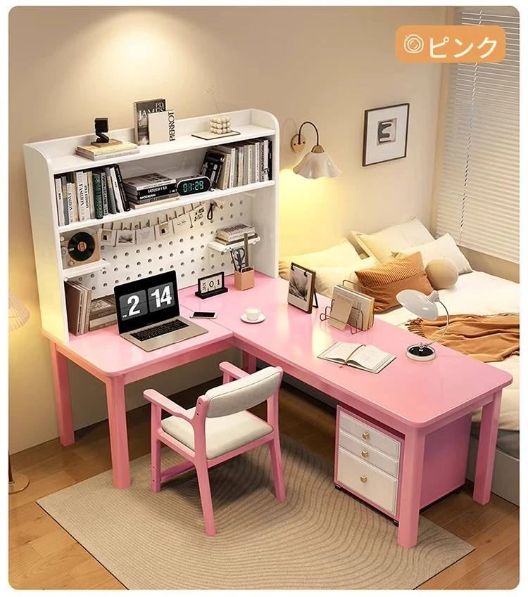 玉菲実木L型コーナーデスク&書架一体型 - 穴あきボード付き、オフィスでも家庭でも使える理想的なスタンドアップデスク!おしゃれで機能的、勉強や仕事に最適な角型パソコンデスク。