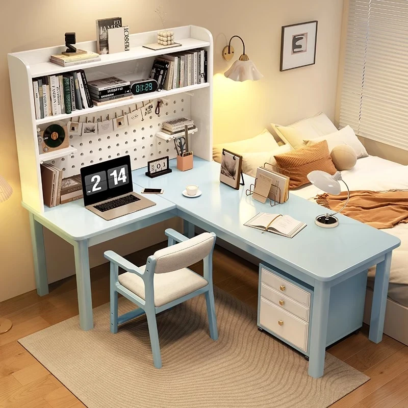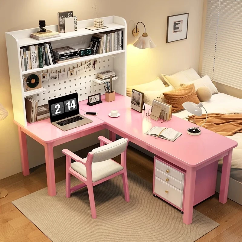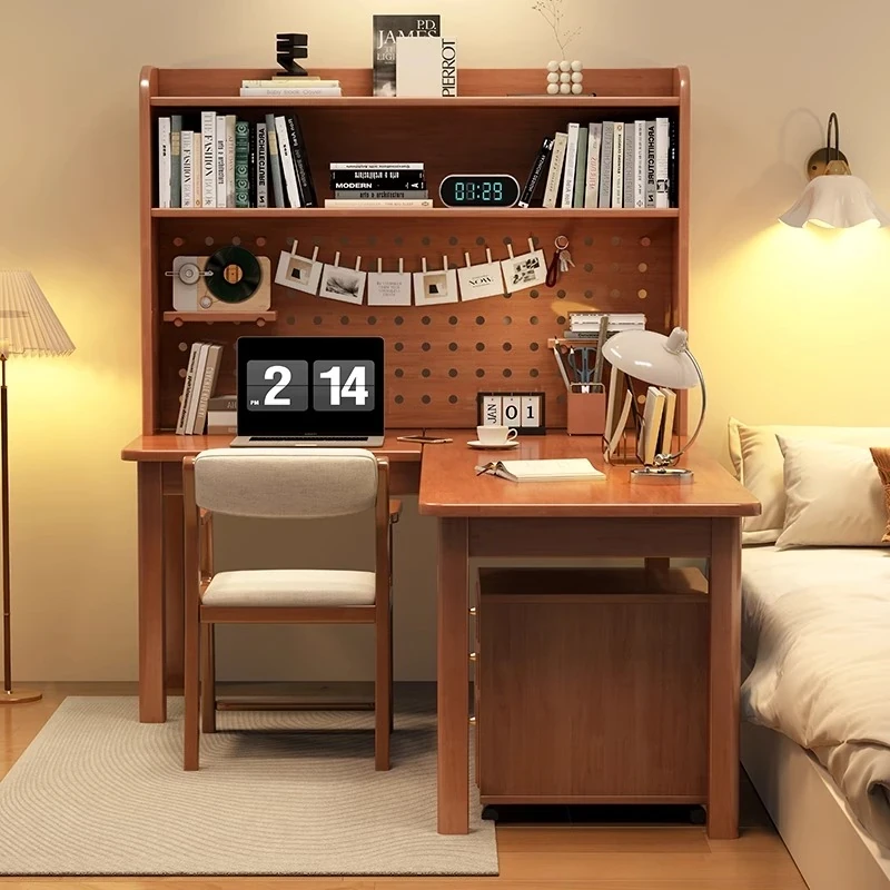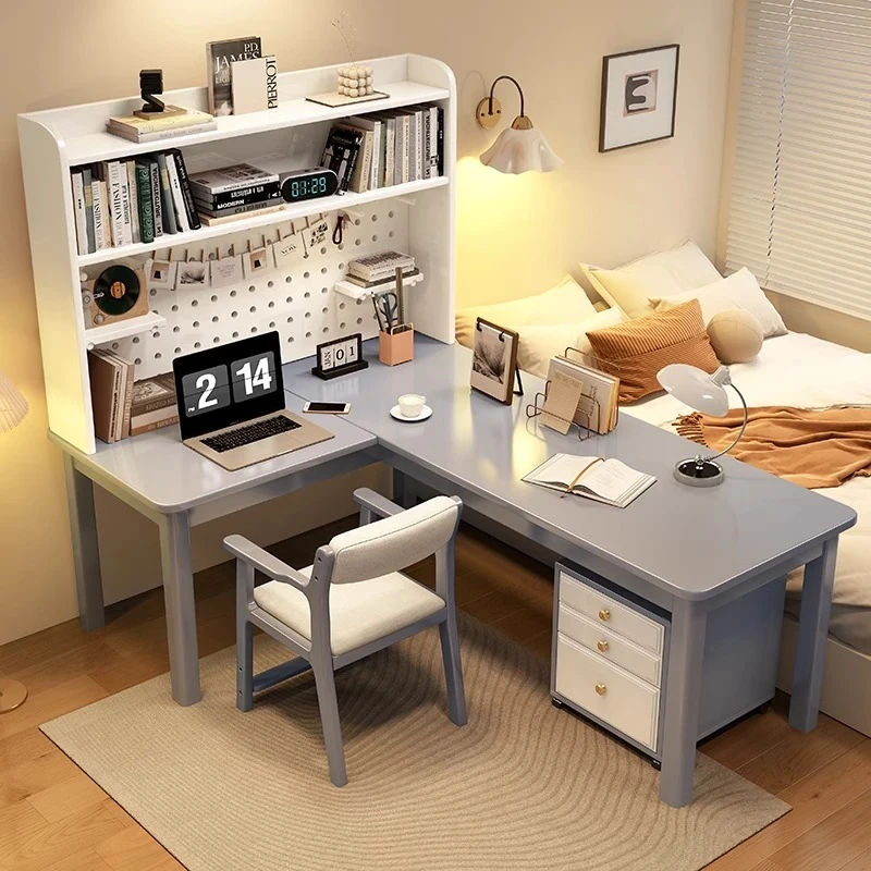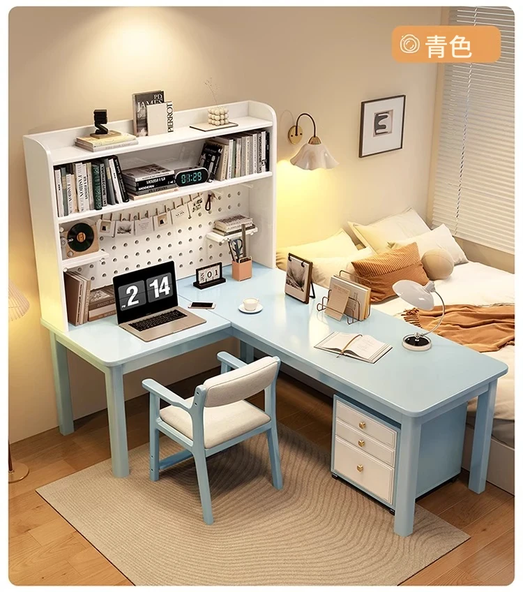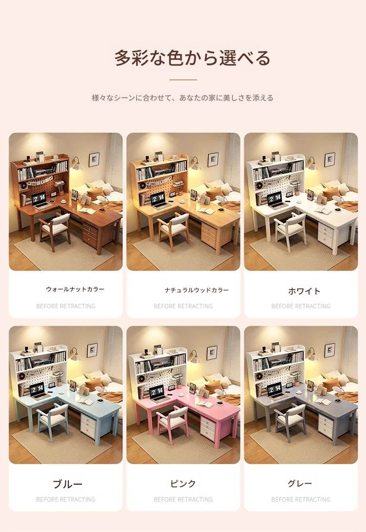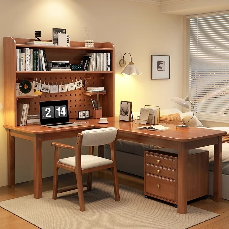 玉菲実木L型コーナーデスク&書架一体型 - 穴あきボード付き、オフィスでも家庭でも使える理想的なスタンドアップデスク!おしゃれで機能的、勉強や仕事に最適な角型パソコンデスク。
