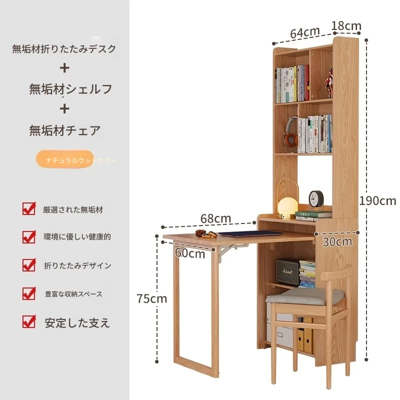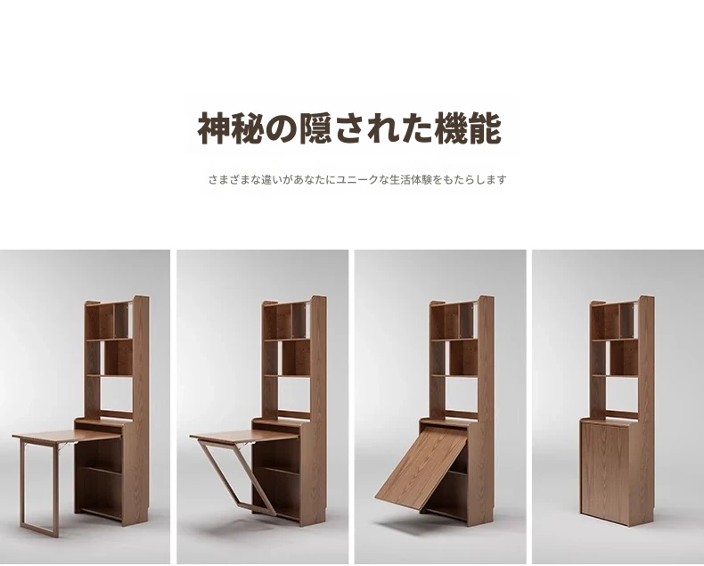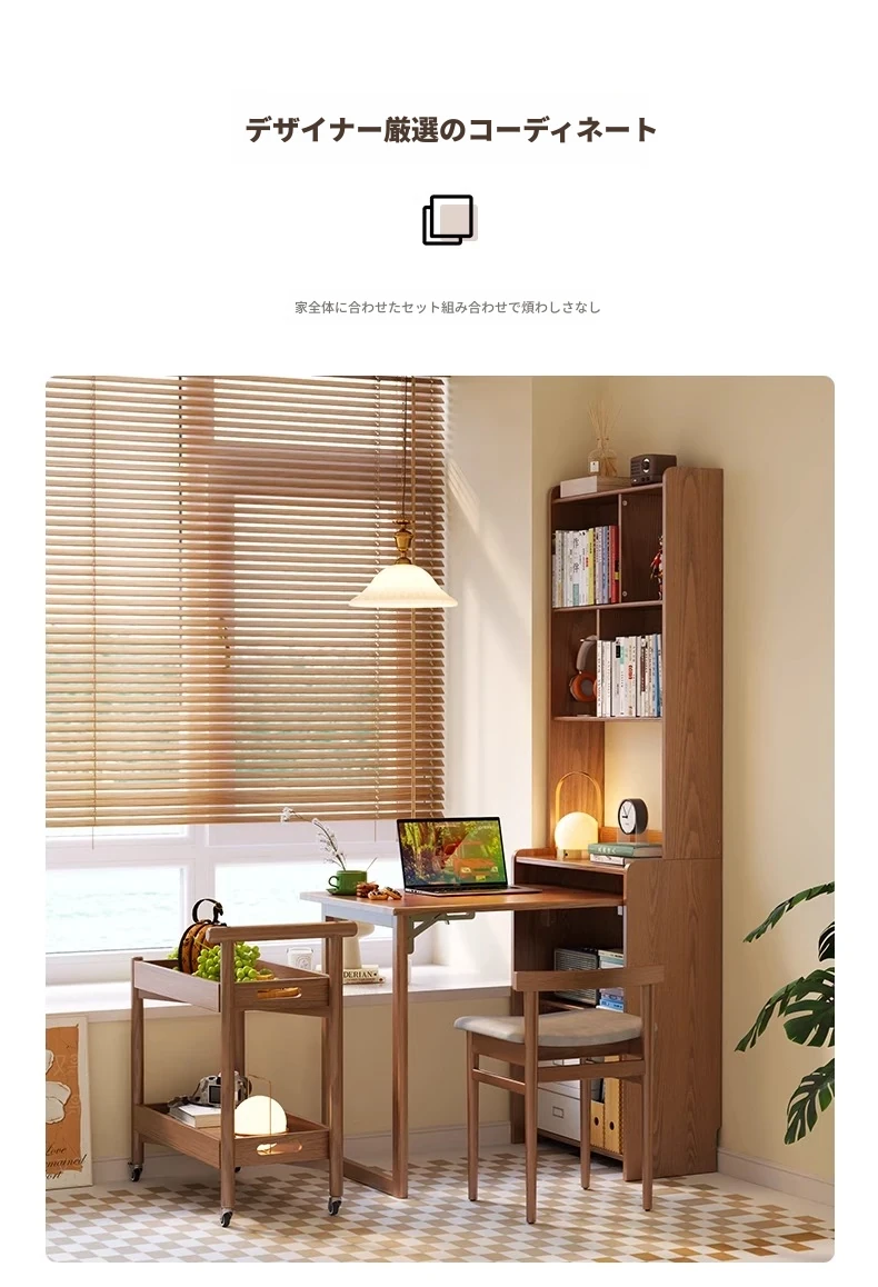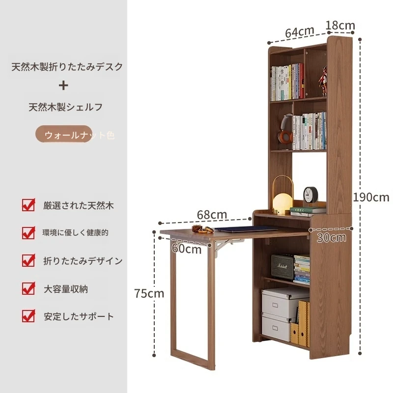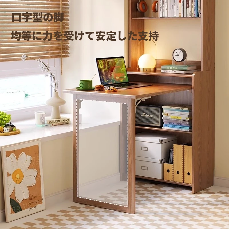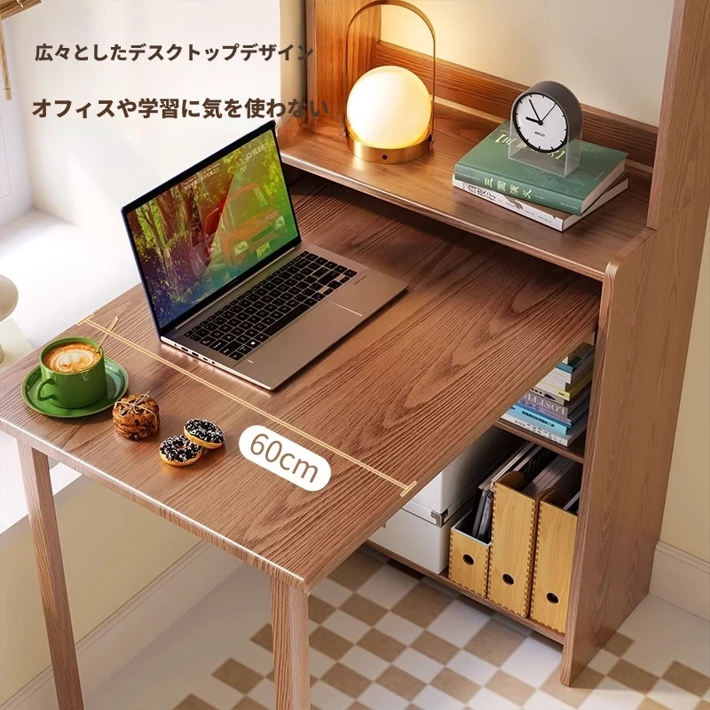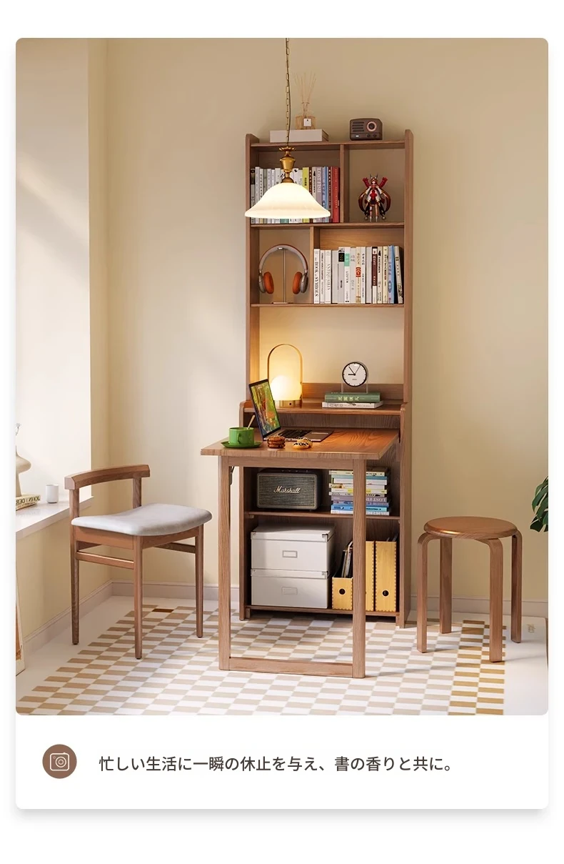 佐識の実木折りたたみデスク兼書棚 - コンパクトな寝室用パソコンデスク。小さなスペースでもおしゃれに、学習や作業にぴったりの収納力!