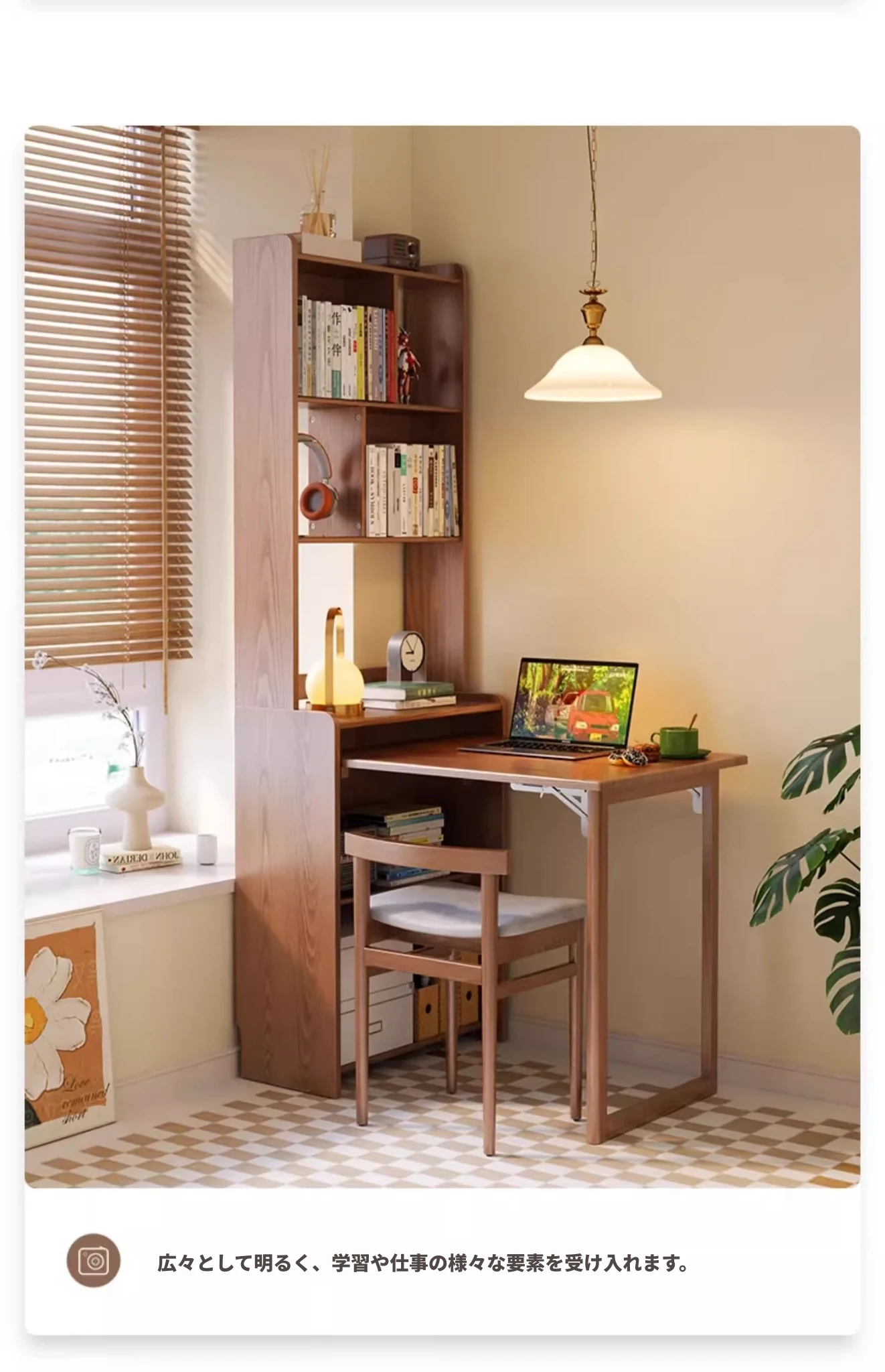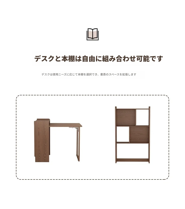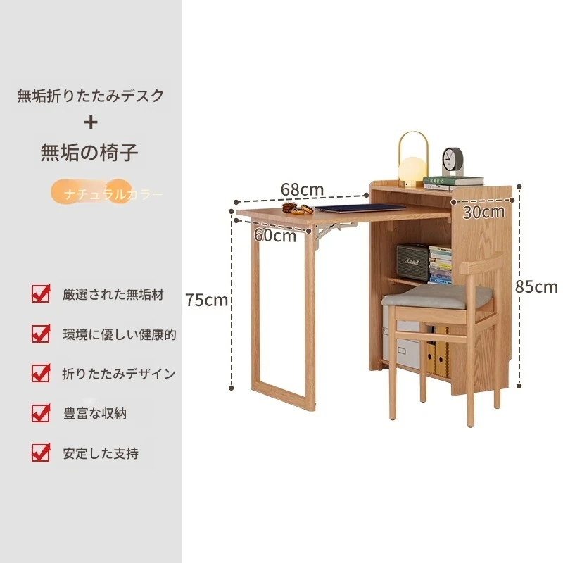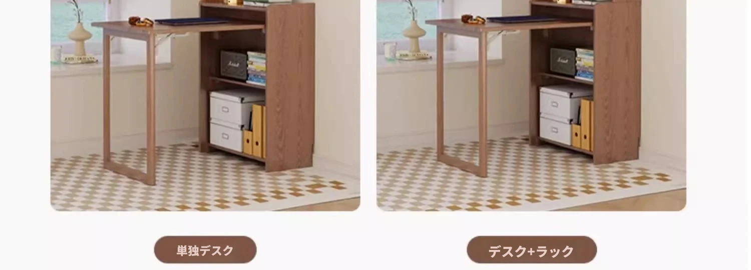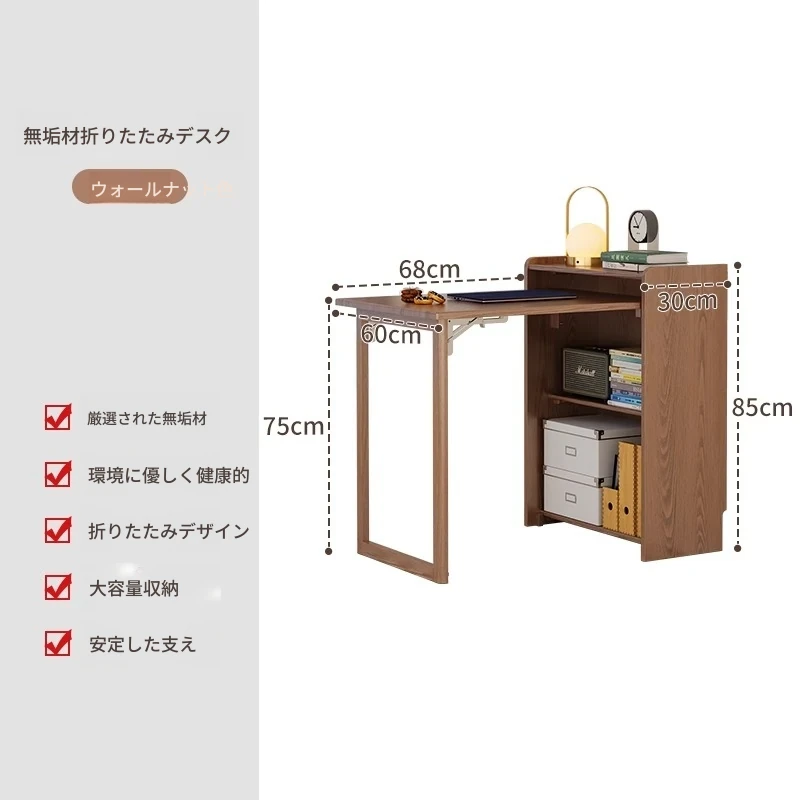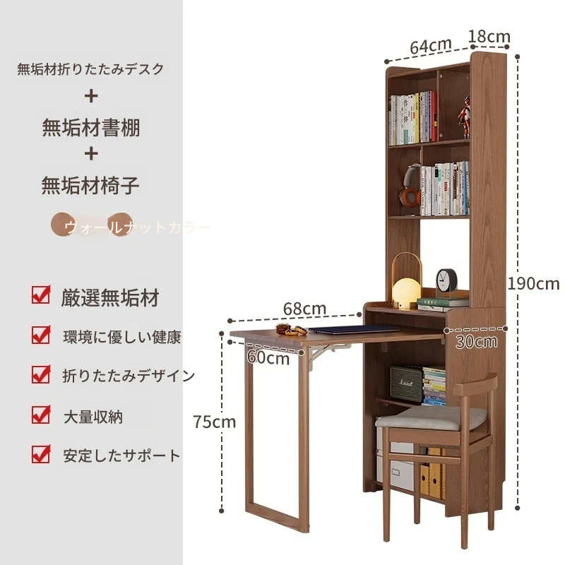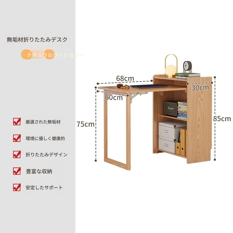佐識の実木折りたたみデスク兼書棚 - コンパクトな寝室用パソコンデスク。小さなスペースでもおしゃれに、学習や作業にぴったりの収納力!