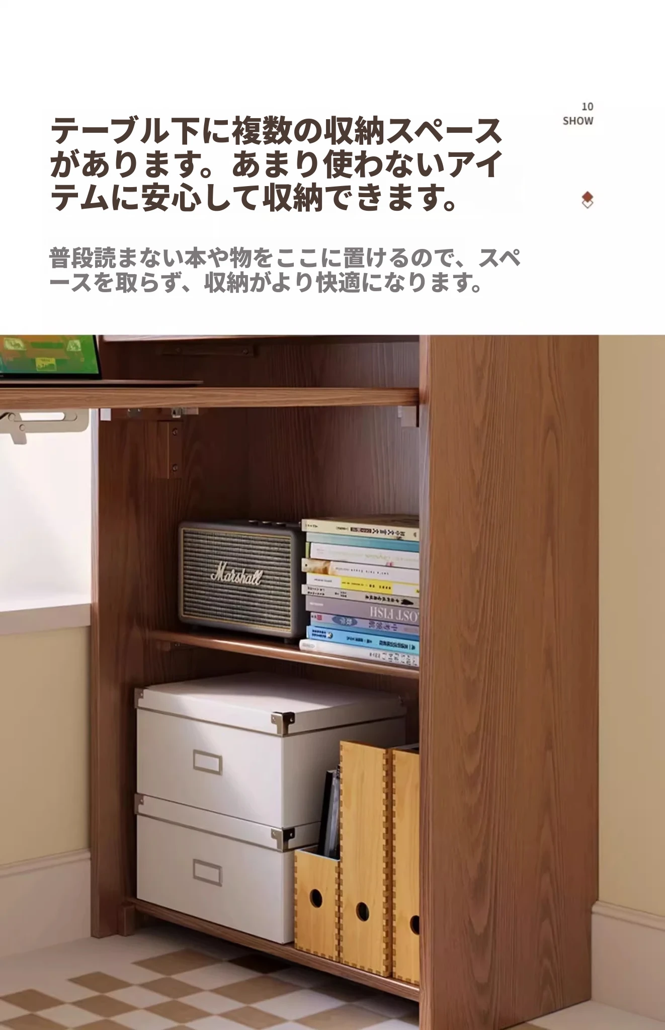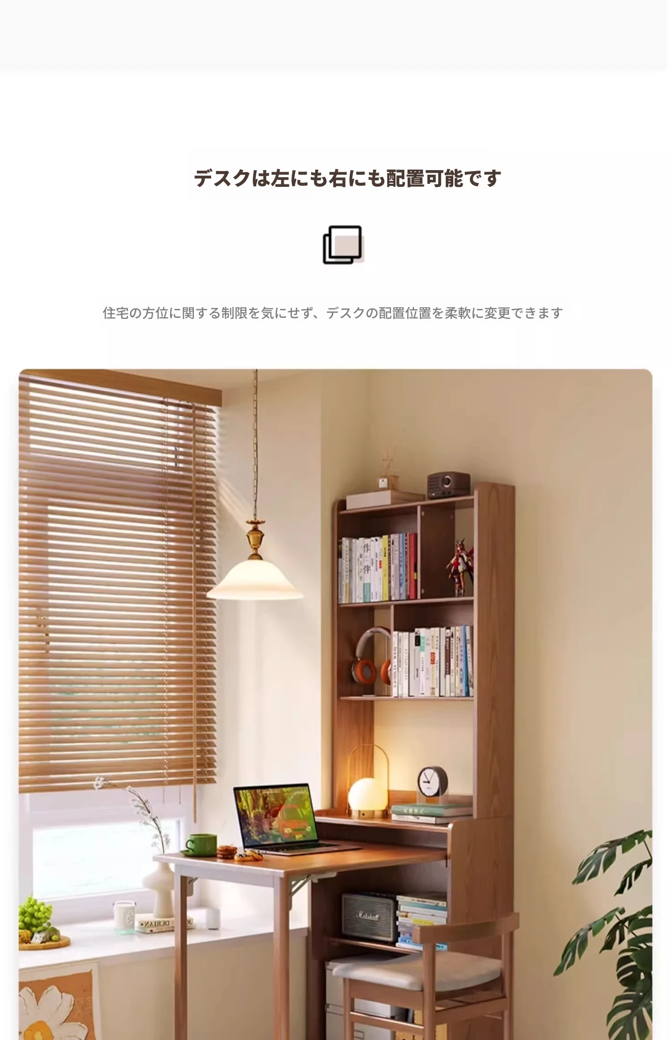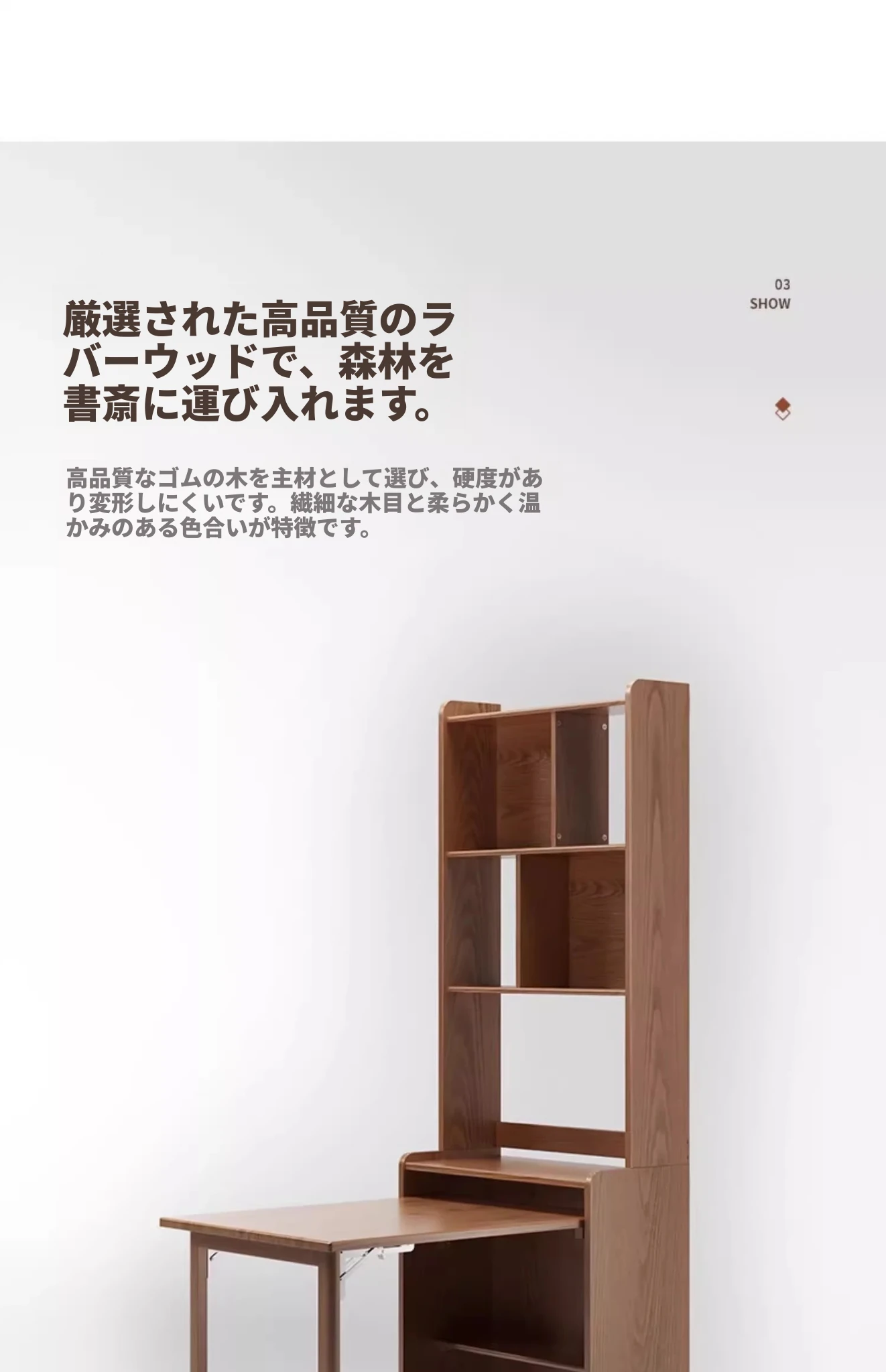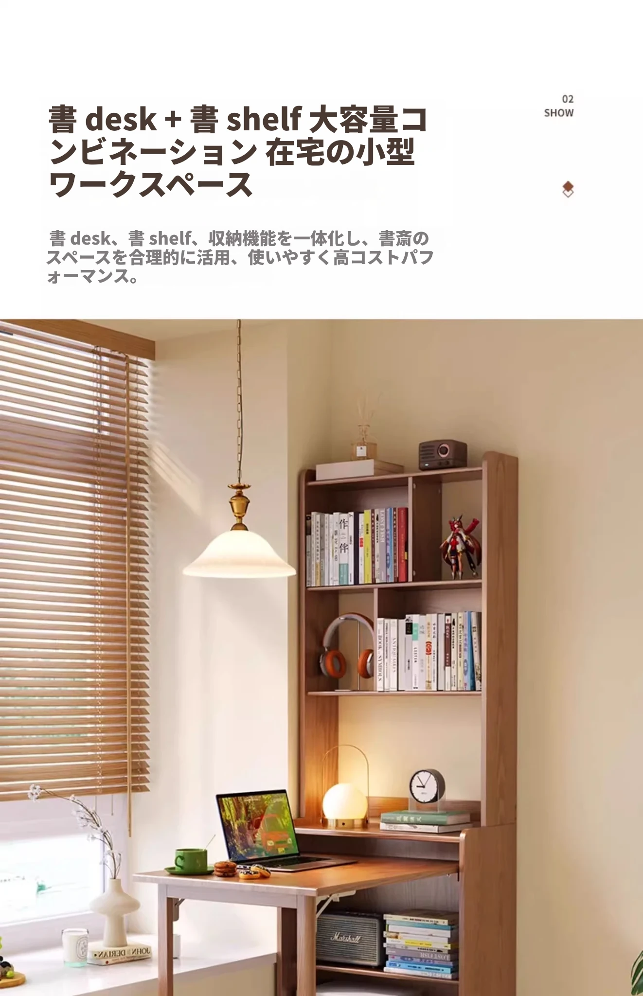 佐識の実木折りたたみデスク兼書棚 - コンパクトな寝室用パソコンデスク。小さなスペースでもおしゃれに、学習や作業にぴったりの収納力!