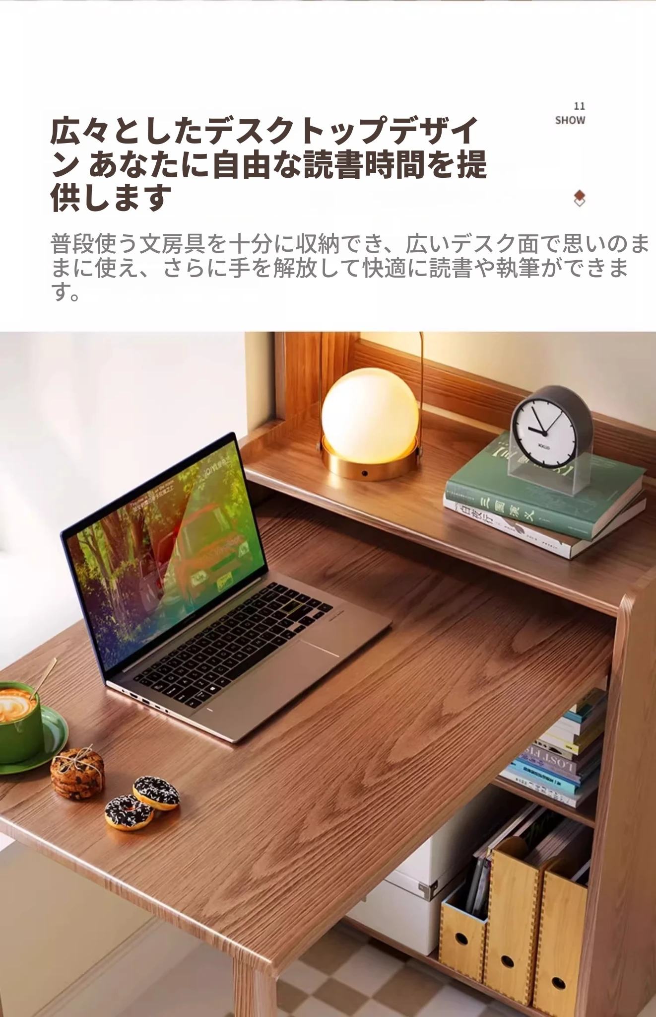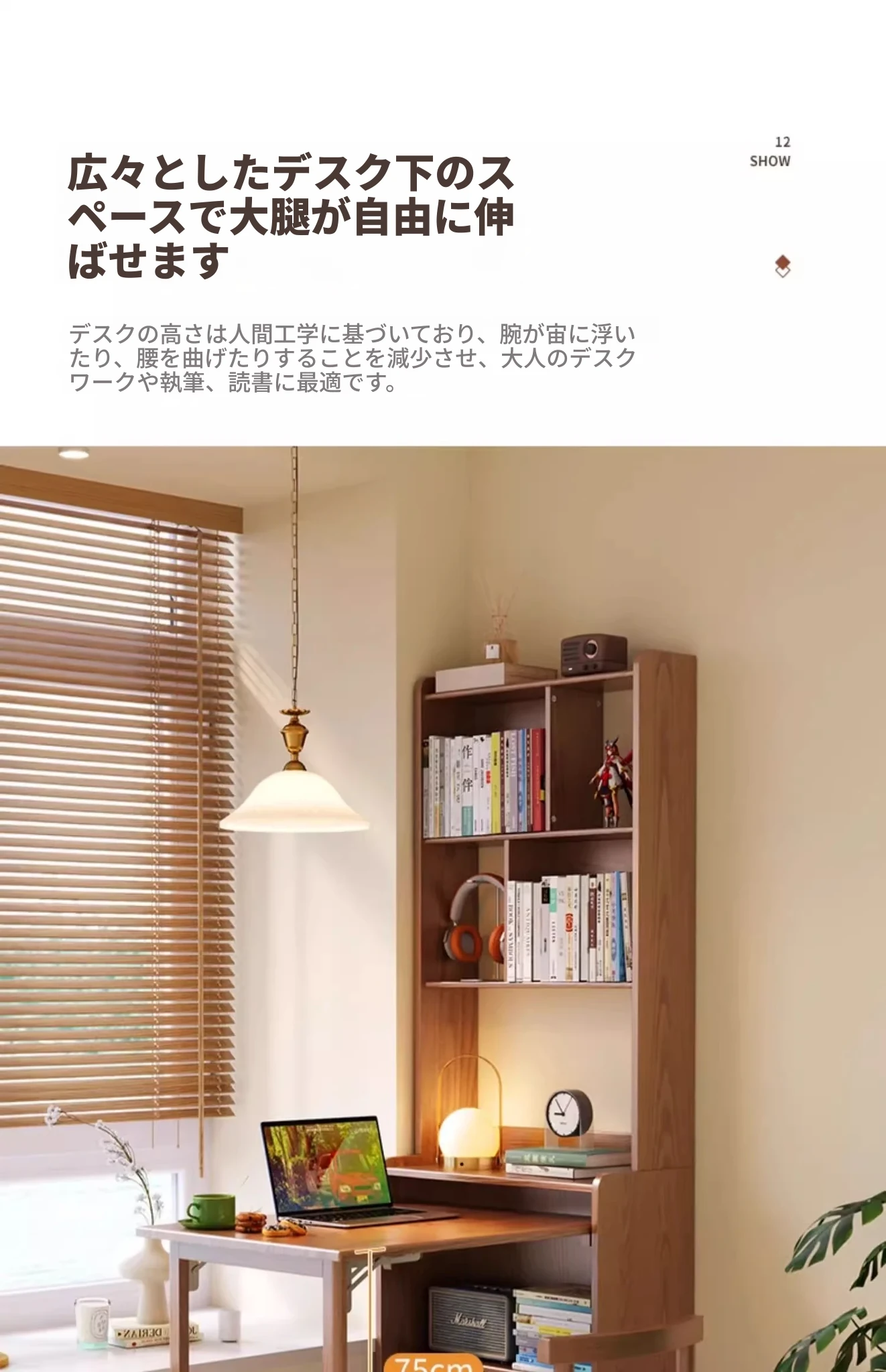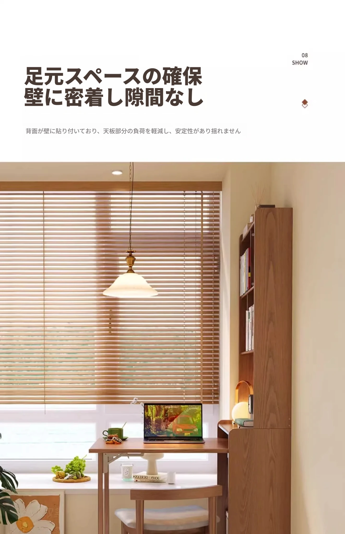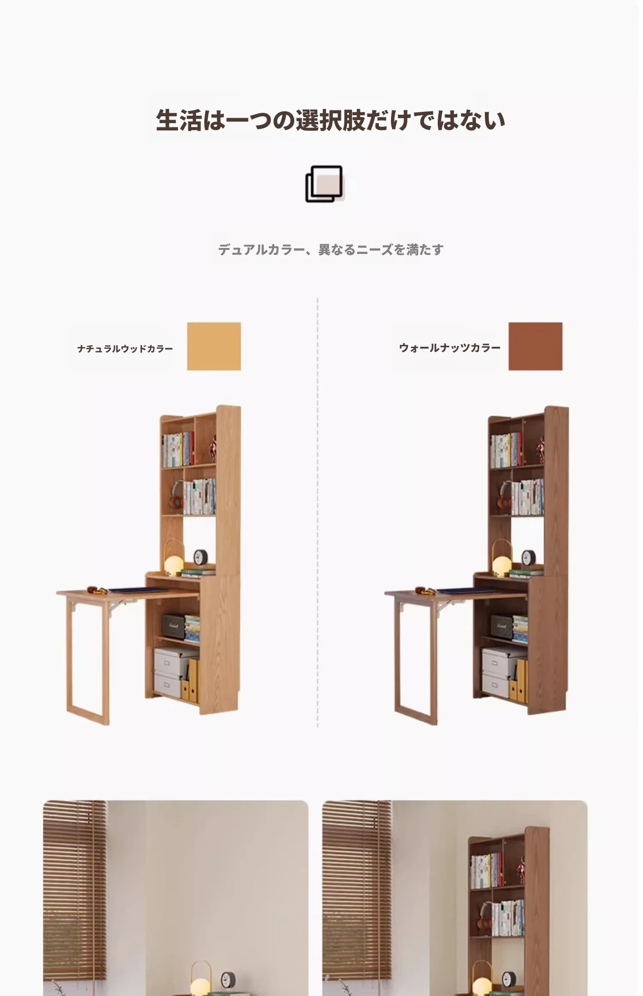 佐識の実木折りたたみデスク兼書棚 - コンパクトな寝室用パソコンデスク。小さなスペースでもおしゃれに、学習や作業にぴったりの収納力!