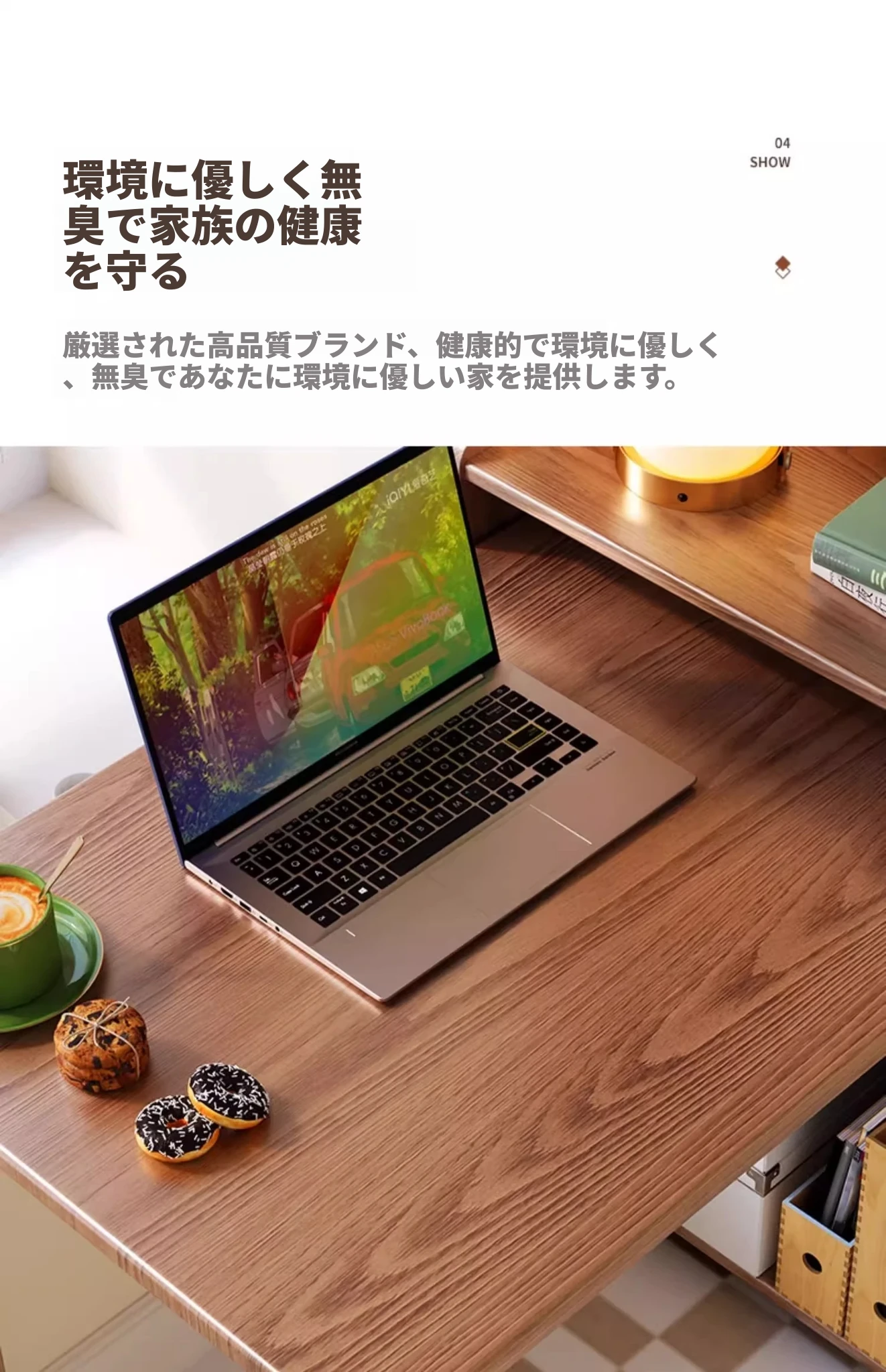 デスク+棚-ナチュラルウッド色 【取り付け無料】